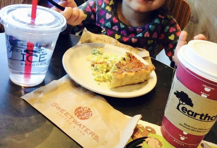 LOVE Sweetwaters! This is my go to place for meeting friends over coffee/tea, studying, doing work on my laptop, or having a mommy-daughter date. My 5-year old and I love the broccoli cheddar quiche (Michigan made by Crust baking pie company). My favorite things to order are the French Vietnamese au lait, Dragoneye, or even just their house blend.
