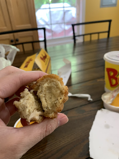 Read moreThis was my first time trying Bojangles and I was excited to try them. At first you order through a robotic voice which wasn't an issue because they actually got my order right but it was a new experience. However when I got to the window is where it all started to fall apart. I waited about 7 minutes before they gave me my food however they gave me a breakfast sandwich when I had ordered a two-piece with mac and cheese and French fries and two blueberry biscuits. When I pointed out to him but this was not my order I was told that somebody must have driven off and then I waited another 5 minutes for my food to come out. I got everything I ordered except for my two blueberry biscuits and apparently got someone's cajun chicken sandwich and fries as well. I had to pull up and wait additional 6 minutes for my two biscuits and when I finally got a chance to eat my Mac and Cheese was barely warm and the chicken had very little flavor. Needless to say I don't see me going back...