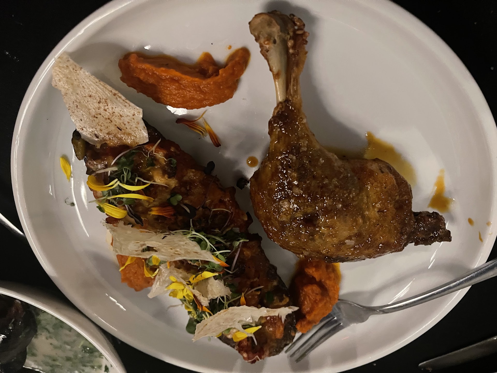 The service really is where the marks fall. I had great hopes at first because our waitress seemed attentive. However, we had to ask for water a few times (kudos to the bus boy who was cheerful and attentive). (We don't typically drink much water at the table, but since the temperature was warm, we drank more than usual). We felt abandoned in the back, with only one other couple sharing the room. I feel our waitress could have checked in to see if we wanted more water or more wine. If the restaurant had been busier, I would excuse this, but it was not. Also, it took a VERY long time for the entrees to be served. I understand each dish is crafted from scratch, but this was a lot longer than expected. As I mentioned, having the waitress check in to refill water, or reassure us that the meal would be served shortly would have earned higher marks here.