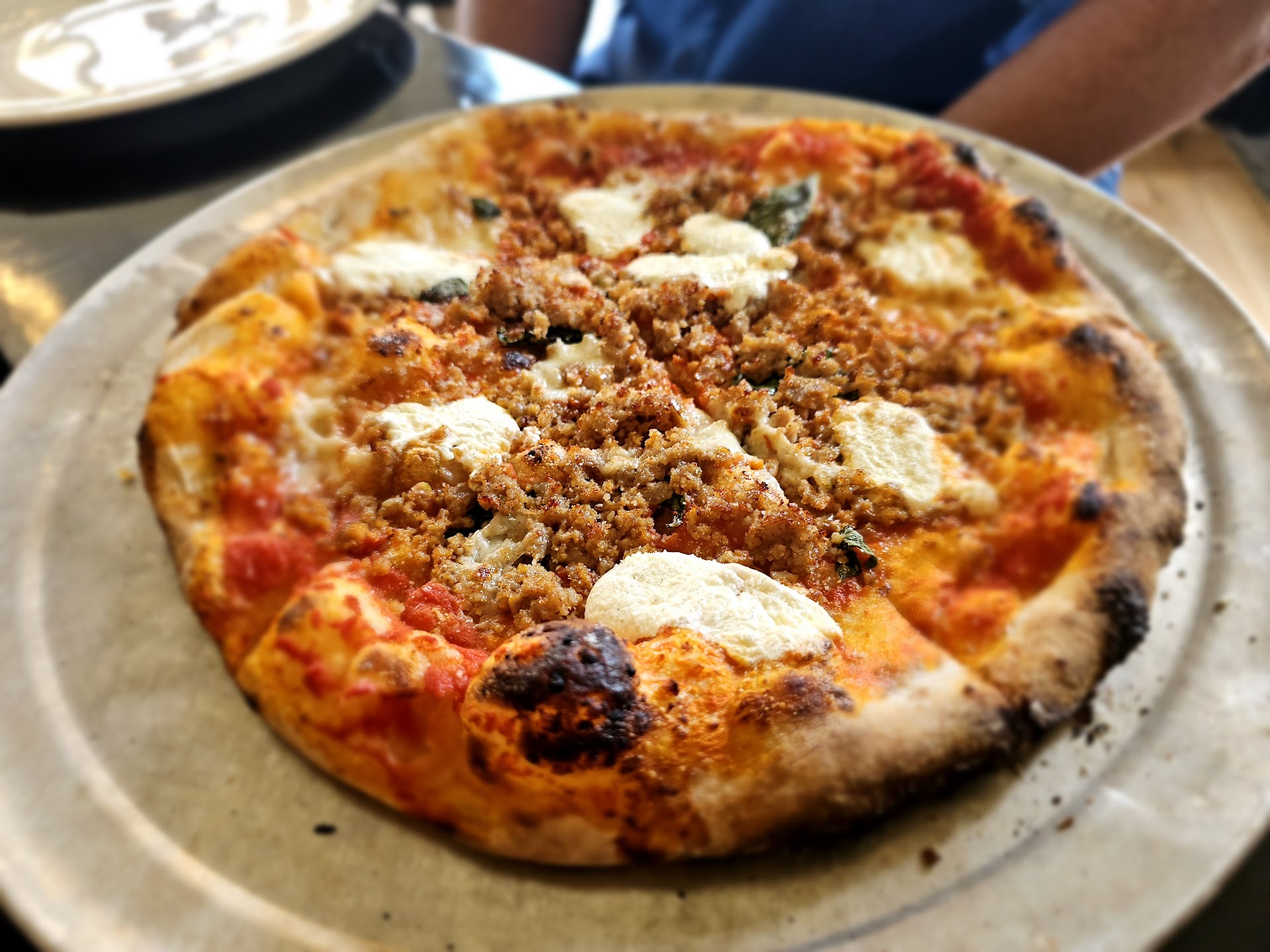 Some neighbors told us about how great the pizza is here. We got to try it during their soft opening. We had high hopes after reading the reviews of their other locations and really excited to try it. Unfortunately, we were sat at a dirty table, which was surprising because it wasn't busy at 2pm. I wiped the crumbs off myself. We got 2 of the Salsiccia Pizza to split between 3 people - Pomodoro sauce, Italian sausage, Fior- di- Latte Mozzarella, Parmigiano Reggiano, ricotta and fresh basil. $18 each. The cheese was really lacking, sausage was good and the pizza was really dry overall. It looked better than it tasted. We LOVE LOVE LOVE neopolitan pizza, but this one was a so so for us. $50 for 2 pizzas 3 tiny sodas. And it took a while to get the food, but that's fine. Hopefully they get the kinks worked out so we can give it...