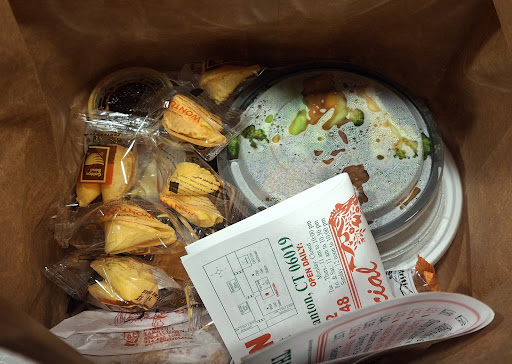 Plenty of fortune cookies were included in the bag, along with chopsticks and a variety of sauces. They do have indoor seating. Maybe six tables? The owners are very polite and accommodating. Open six days a week, basically 11Am - 10Pm. Closed Mondays and most holidays. Plenty of parking as they are within a small...