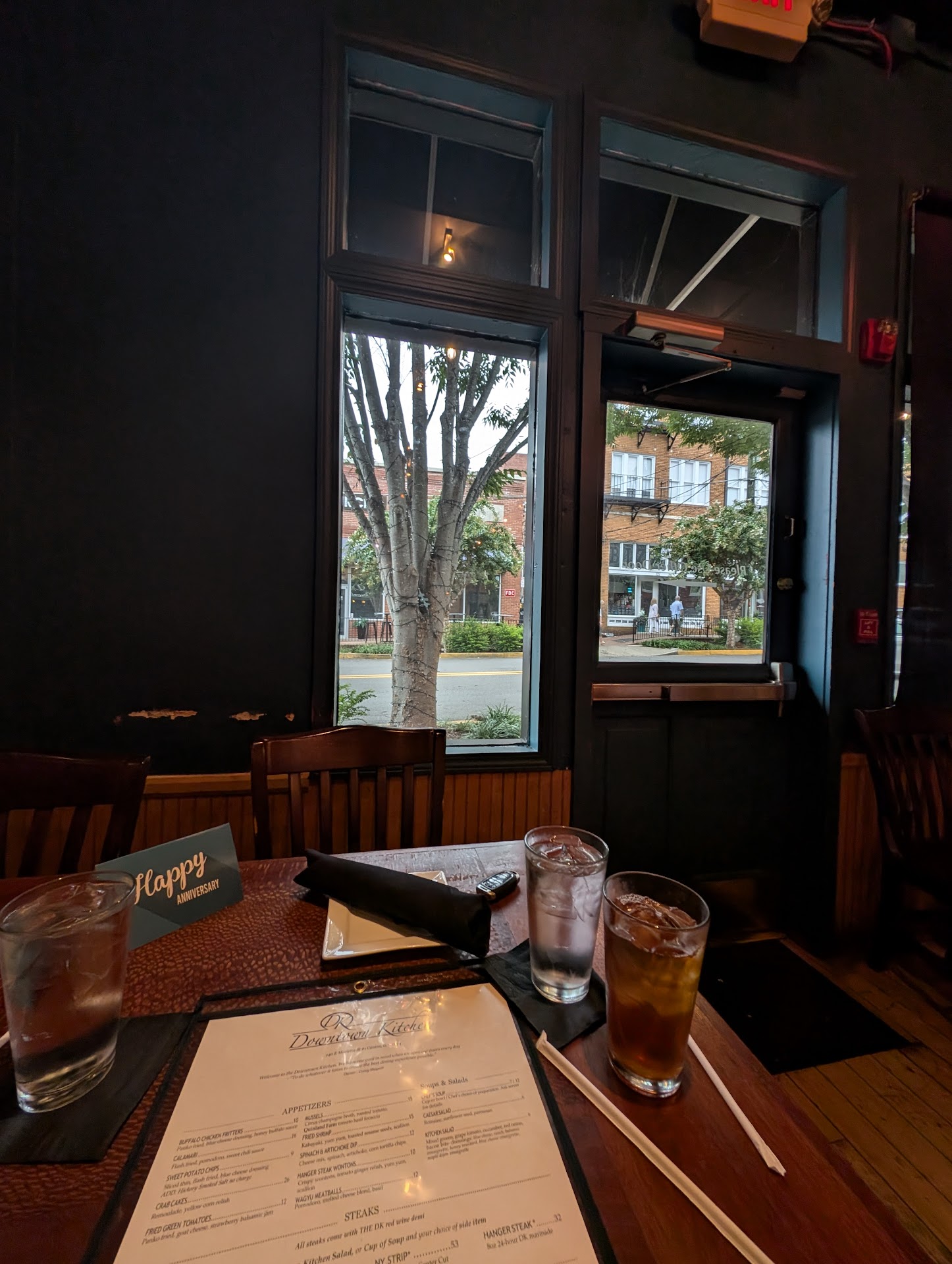 Due to reservations the host couldn’t accommodate our two-top in the main dining room, but invited us to walk out and around to the adjacent building and take the elevator up to the second story dining room. We did.