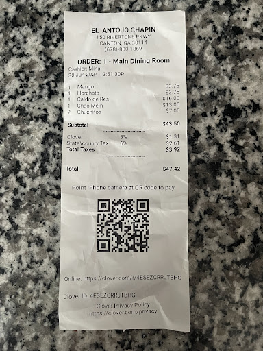 El Antojo Chapin is a true hidden gem in Canton! I ordered the pupusas, chuchitos, and caldo de res, and everything was outstanding. The pupusas were packed with flavor, the chuchitos had that authentic homemade taste, and the caldo de res was rich, hearty, and comforting. To top it off, I had the fresh strawberry juice, and it was absolutely delicious — the perfect refreshing drink to go with the meal.
