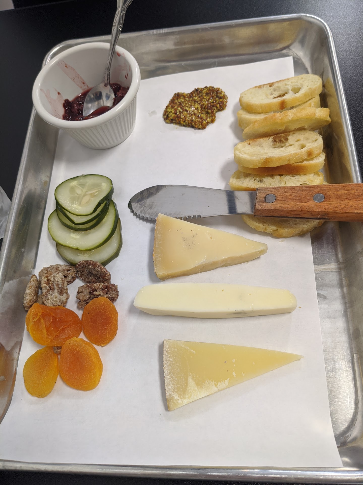 This tasty gem hides down fourth Street in Canton, Ohio. It is a storefront, so watch closely as you walk towards it because it doesn't stand out and is still kinda hard to spot as you come up the street. The good news is the parking right next to the business on the street. This is important to me because after tasting the delicious offerings, I knew I would be stopping by on my way home. I would like them to stay open a little later a few days a week to accommodate working in downtown Canton until 5pm. Recently at lunchtime, I shared a cheese flight with my friend, and relied on the owners to pick the offerings. They did not disappoint. We had a cheddar, and a cheese made from several kinds of milk ( including bison!) And one other that I not remember. The flight came with house made chutney that was out of this world good, a spicy mustard and crostini. For $12 it was delicious and a good representation of the cheese offered in their case. Not a typical place and not what you would expect to find in an alley in Canton....