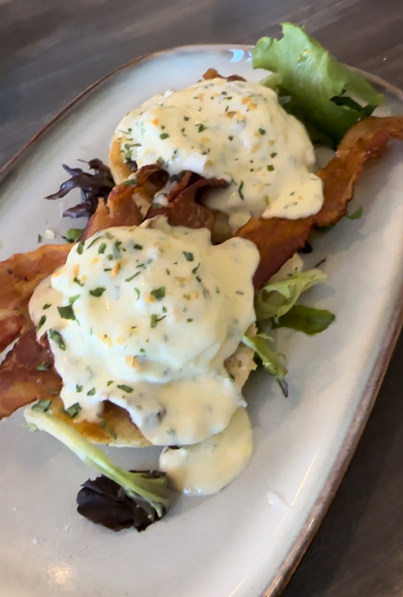 Read moreWe were looking forward to our first visit to Gather but unfortunately we’re disappointed! We came in and were greeted and seated immediately. The first thing I noticed were the seats were the very uncomfortable metal chairs that I actually avoid certain restaurants that use them. The woman who seated us allowed me to sit along the wall to give me more comfort which I appreciated! Our server came over and we ordered. She brought my coffee and cream, I didn’t see anything about specialty coffees on the menu, and I asked her for a spoon as we had no silverware. By the time she came back near our table my coffee was cold. I asked again for a spoon and a replacement which she took care of. The food came fairly quickly but unfortunately we were disappointed. My husband’s omelette was very overcooked in fact very brown. The home fries had one sweet potato. He asked for ketchup and our server forgot to bring it. I caught her eye while she was on the phone and mouthed we need ketchup and she brought it but he was more than half done. He had not been offered toast so when she brought the bill I asked if it came with toast and she said yes would you like it now? My food was ok, the avocado bacon and tomato grilled cheese with house made chips, but the chips were very overcooked and brown. We saw someone walking around talking to tables who may have been the owner but he was on his way out the door as it was close to closing and didn’t stop at our table. So, the other reviews were much better, it could have been we came...