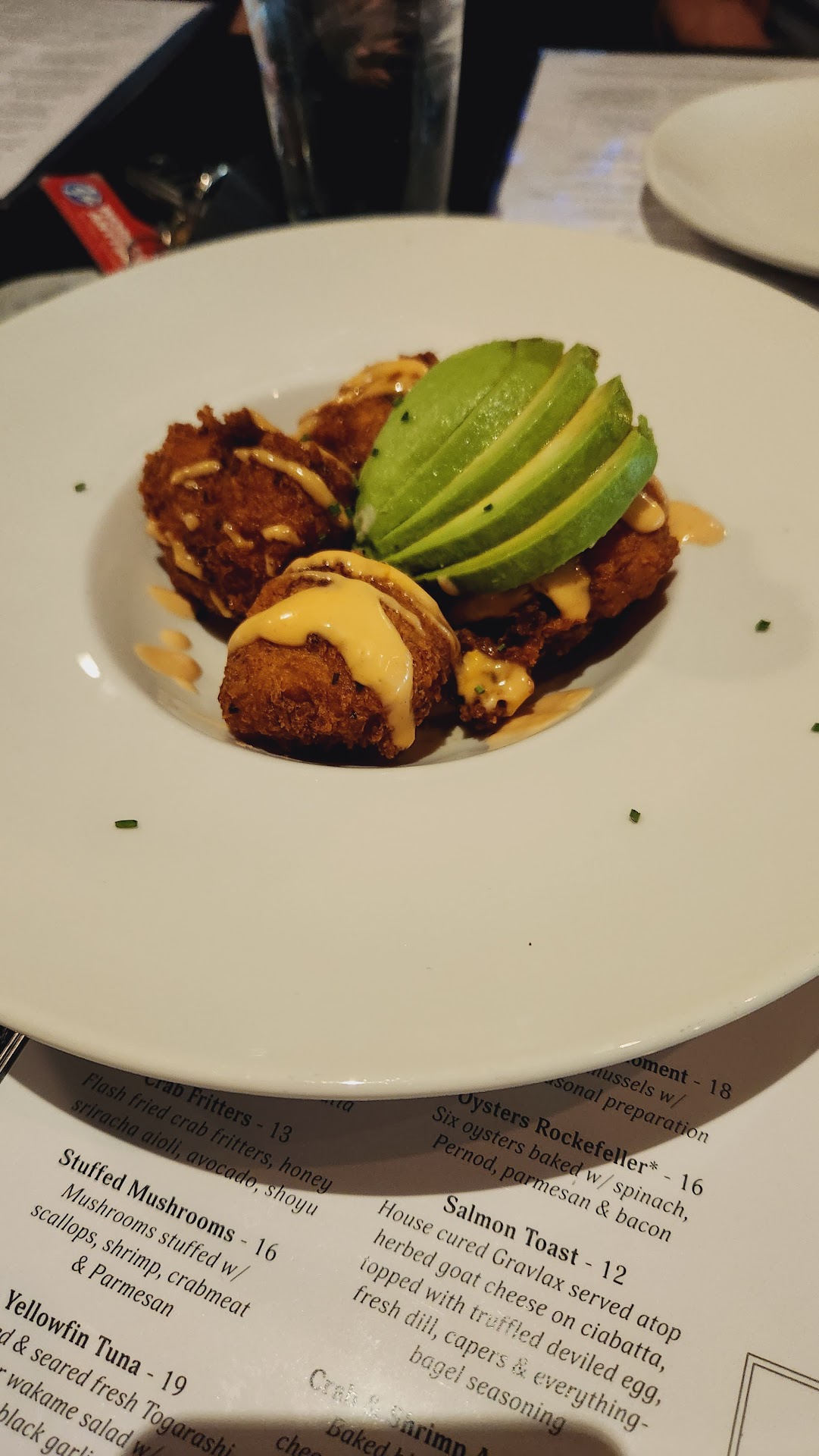 I had shrimp & grits in a sauce and it was great. My three dining companions all ordered different items & were very pleased with their choices. Three of us had to request a take-home box. Yet, two of us had room for dessert! My partner had a cheesecake & I had creme bruleé. Both were very delicious and not too filling or sweet; perfect end to a perfect meal.