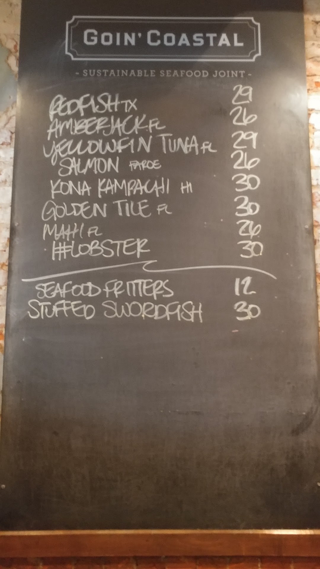 Read moreWe planned to dine with friends at Goin' Coastal recently & it was a great choice - for the food. Offering menu items & specials (about 6-7 different fish,) the food is beyond fabulous! Apparently they procure fish from sustainable fishing practices & it is flown in minimum 3 times per week. (It may be more often however their website doesn't specify.)