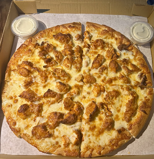 Read moreThe guy was nice when I picked up the pizza I got the Super Buffalo Chicken This is going to sound crazy, but I don’t regret it I ate the large chicken pieces by themselves Dunked in the OUTSTANDING blue cheese dressing Super juicy, flavorful chicken Then I ate the pizza without the chicken pieces on it Had a really, really great vinegary flavor The cheese was definitely good quality