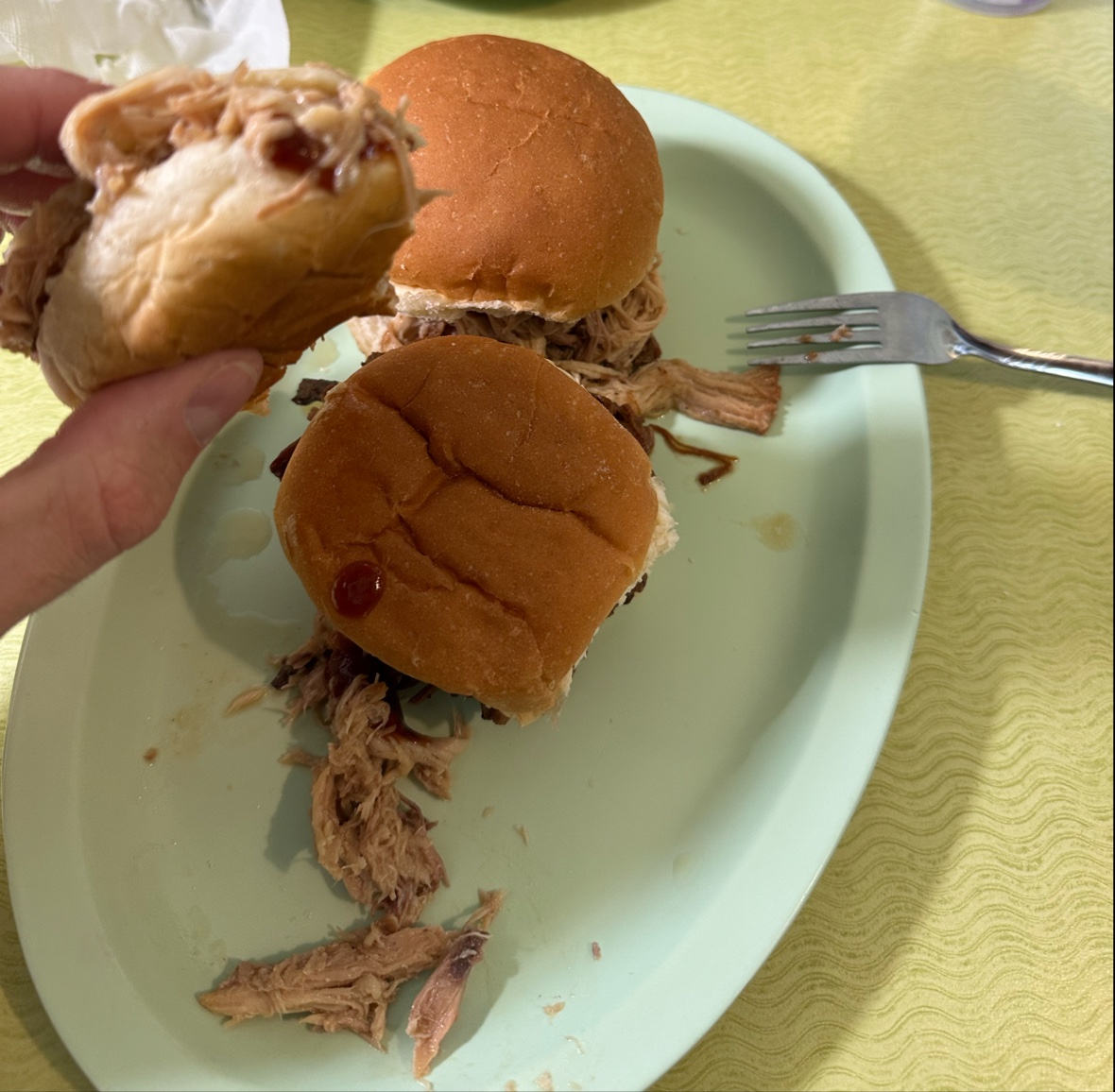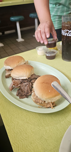 Overall an unsatisfying experience. Upon walking in and sitting down at the counter, I just receive a grumpy look from the waitress and a mumbled "will be right with you". After several minutes and chatting with customers, she decided to ask me what I need. What I need??? First, I need a friendly greeting and a smile when I enter as a customer, followed by a "How are you today and what can I get you?" Is that so hard??? Her behavior made me feel like an unwelcome intruder, not a paying customer. I choose the pulled pork sandwich. It was mediocre at best. For a place that has "BBQ" in their business name, the meat should be barbecued and not just be flavorless pulled pork drenched in BBQ sauce. No BBQ smoked flavor at all. It only got worse. I was going camping and ordered a pound of the pulled port and a pound of ham. The pulled pork was totally different from the meat that was in my sandwich. Gross big chunks of pork meat, fat and cartilage (!!!) floating in slimy gibberish meat jelly! The ham was ok, however with a lot of fat on it. NEVER AGAIN WILL I GOT BACK TO THIS PLACE. GROSS,...