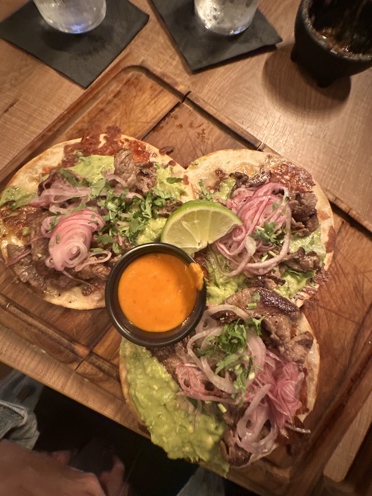 Read moreThis past week, my husband and I decided to try something new for his birthday dinner and we ended up here. We thought the menu was a bit overpriced, but were willing to try it. Even though the waitress was a bit giggly towards my husband when he asked a few questions about the menu, I decided to ignore it. The guacamole tasted like chipotle guac, very premade and just a strong lime flavor not much else. The tacos with the crispy cheese were most definitely the best thing we had. The quatro leches was okay nothing too special. But to end the night after celebrating my HUSBANDS birthday and just a few weeks ago, celebrating our wedding anniversary (thank goodness we went somewhere else) our waitress asked us if it was a separate check and when I said “uh we’re married” she said I “didn’t realize” ? Meanwhile, we both have our rings on and are definitely not acting like a first date.. Just had a sour end to the meal and we will definitely not be returning. I highly suggest you train your staff to pay attention to who they’re serving and probably not ask a couple who’s celebrating something if they’re on a separate check. Our rings were fully visible on the table, we have 3 children together and this felt really weird to ask and not even apologize for the mistake just laugh… and then hover over the table watching...