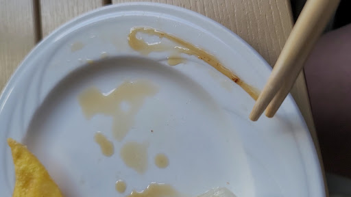The pork dumplings came with a sauce, and I was the first to dip my dumpling in. When I took it out, there was a gelatinous string attached to it. When I went to inspect it, it did not look like a worm or anything but maybe starch that solidified..? I've worked in restaurants for a very long time and am almost certain that this is what it was, but it must have been sitting for a while to develop like this. I told our waitress and she was quick to take it and remove it from the bill (thank you).