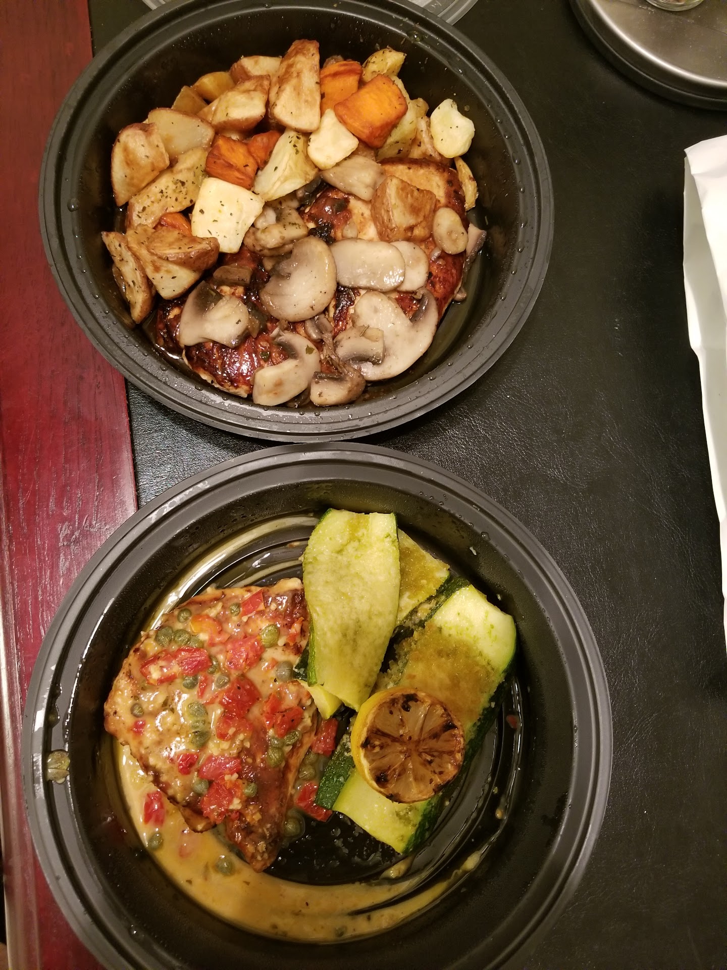 I ordered the Chicken Marsala (Yum! My fave!) I.... can't really describe what I received accurately. It was sad. But I can tell you what it wasn't... it wasn't real chicken.