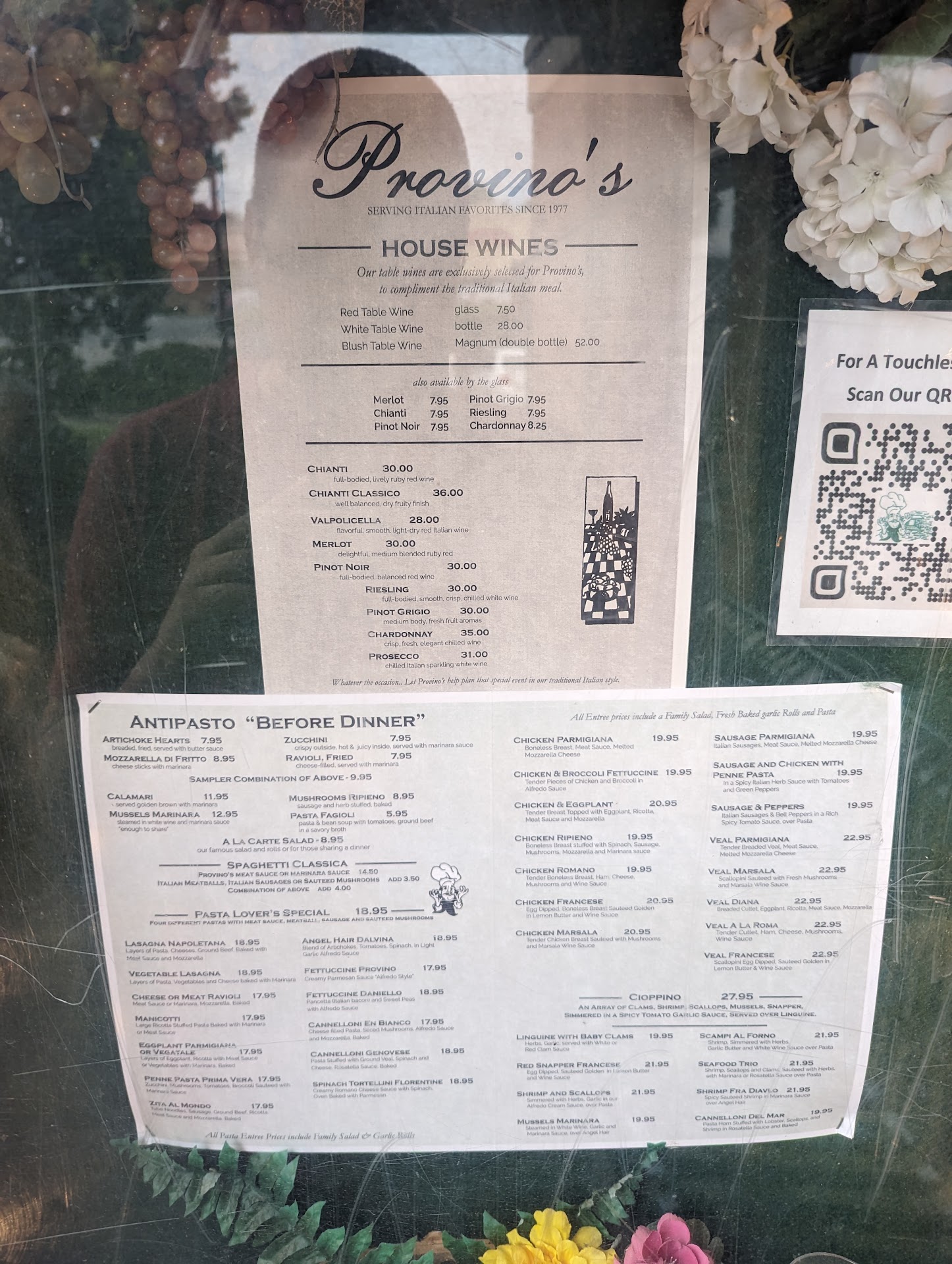 My dish was not up to what I expected. I was disappointed to see that it was topped with basic American ham, not prosciutto like you see in other restaurants (or recipes). Also, it's referred to by Italians as Veal "Alla" Roma. My wife's Veal Marsala was standard and nothing to rave about. But nothing to really complain about there. The Fettuccine Provino was very disappointing. It was dry, lacking sauce, lacking Parmesan cheese, and lacking salt (probably why it was lacking the Parm). Even Olive Garden gets it better than this.