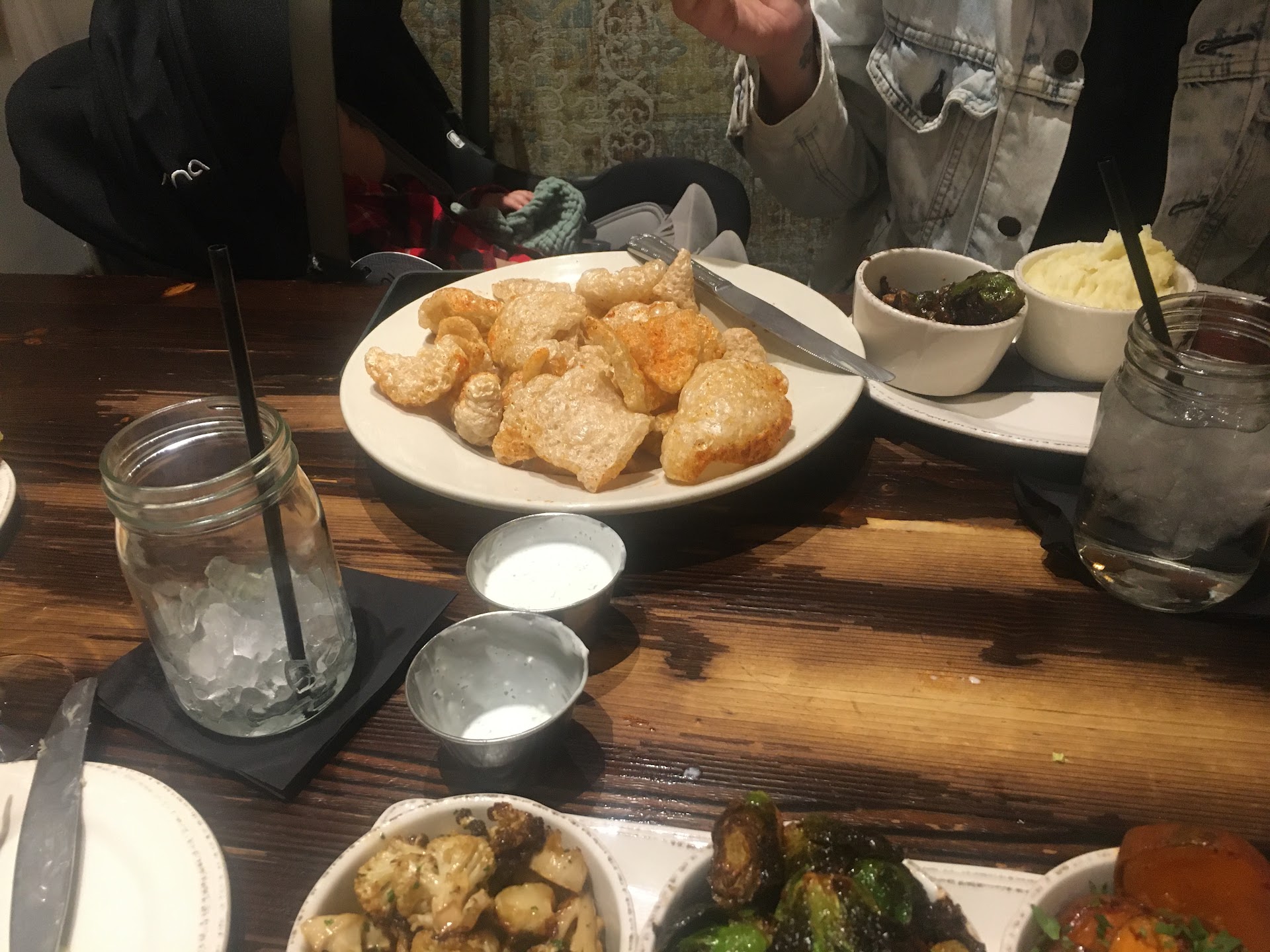 Read moreThis is a tough one to rate for me, for these reasons that follow. First off, the food was excellent. Definitely no complaints at all on the food. We had biscuits with bacon jam & gravy for an appetizer, and the bacon jam was fantastic. I had the pecan pulled pork with creamed grits and roasted corn, she had the chicken breasts smothered in pimento cheese, and it was all fantastic. The reason for the 3 stars is this, we had a reservation for 7:30 for a booth. They called my phone at 7:29 (we were right outside waiting), right on time, except what they had for us was a table, not a booth. It was VERY loud inside, and because of this, I really wanted the booth that we reserved. They said we would have to wait some additional time for a booth to open up. After another 5-7 mins of waiting for one to open up, we decided to just eat outside. It was extremely loud inside, and that seemed like a better solution. It would have been, except the flies were really bad outside. We spent the whole meal swatting at the flies, which really killed the evening. Like I said, this was a tough one to rate, because the things that didnt go well, weren't exactly in the restaurant's control. The food got 5 stars easy enough, but the rest of our experience is why I ended up with 3 stars. I'm iffy on going back or not, we drove 45 mins to get there, and it didn't end up all that well. Their dessert menu had some things on there that sounded good, but the flies were so bad we went somewhere else...
