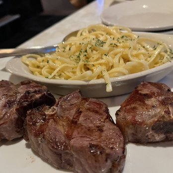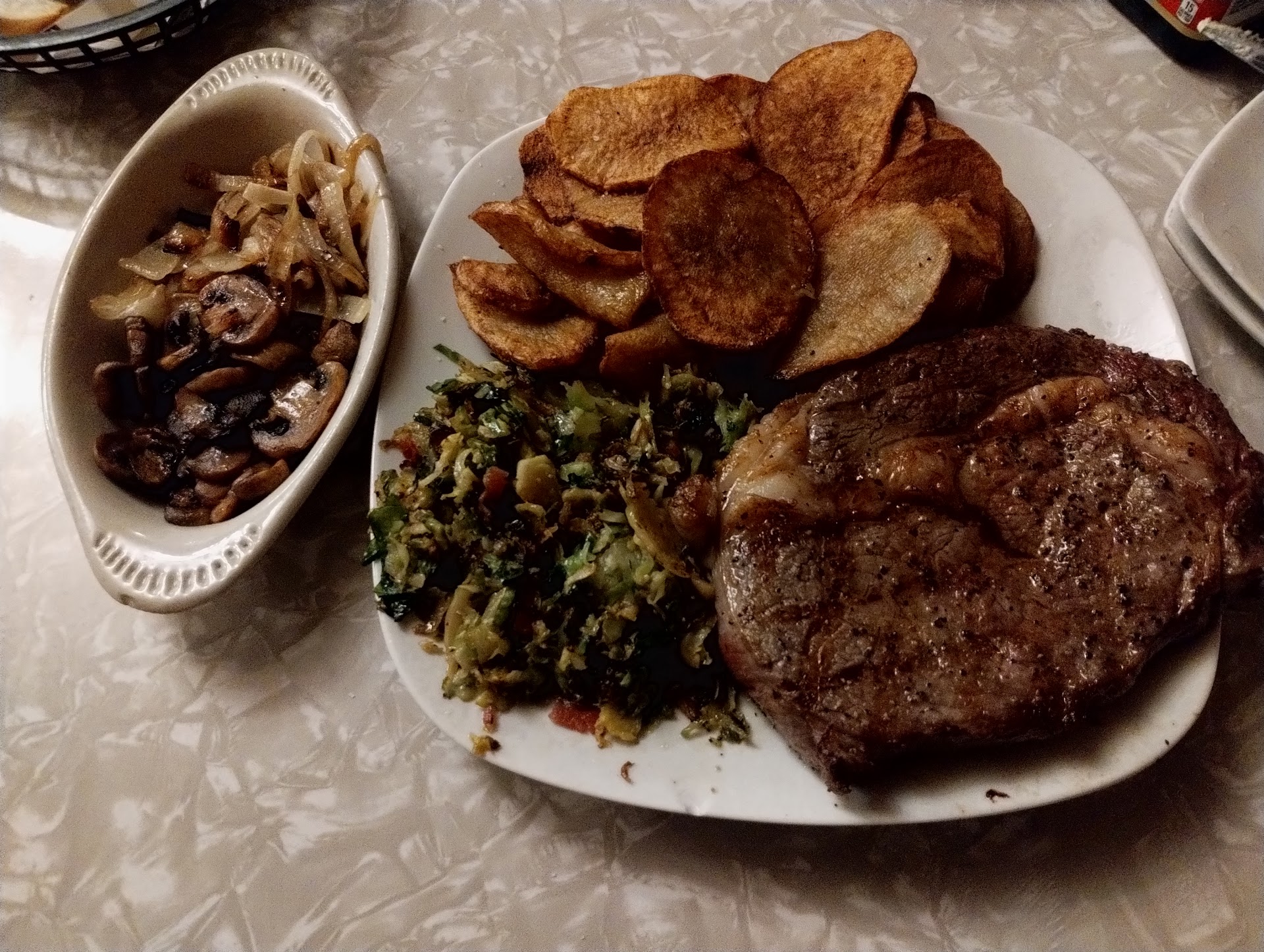 Food: let's start with apps. We had the mozzarella sticks. Hands down the best mozzarella sticks I've ever had. The sauce was super flavourful and so were the sticks. Super crisp on the outside and ooie gooey goodness on the inside. Main course...Kiddo had pasta which she enjoyed and she had the fries which she also really enjoyed. The hubby had a filet and I had the ribeye. Now...hands down steaks were very very flavourful...taste wise best steaks I've had in the area. If I did have any sort of feed back...is we both thought our steaks were a bit under our preference. Asked for medium...and they seemed a bit more mid-rare to rare. It was not anything that bothered us badly because they still had great flavor and I always bring home for leftovers...so the re-cook will turn out to a perfect temp. Dessert.. kiddo had some ice cream with chocolate and we shared a peanut butter chocolate pie. Both were good. Pie was rich but tasted great with the ice cream from the kiddo.