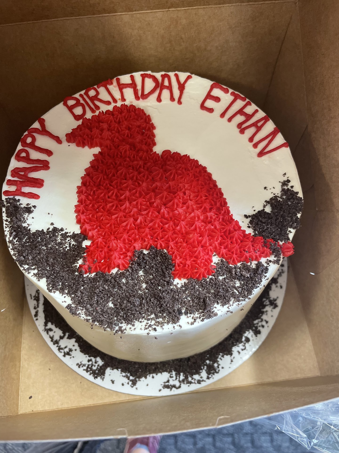 Birthday cake was not what we ordered and completely disappointing - especially for price - and the âapologyâ from the owner left much to be desired. My mother ordered a marble cake with chocolate frosting in between the layers with a T-Rex design for my sonâs birthday. I opened the box at the store and was shocked at how unprofessional the cake looked. The handwriting was messy, the dinosaur didnât come close to resembling a T-rex, and the cake was not symmetrical. The photo is the picture I took in the store. You can clearly see it is uneven. Once cutting into the cake, it was apparent that the cake was burnt. I now believe that the cake was uneven because the baker tried to cut off the burnt pieces. When a kid tried a slice of the cake, they said it was gross and tasted like coffee. Sure enough, the chocolate filling was definitely more coffee flavored than chocolate. My mom called to complain about the many issues, and her complaints were largely disregarded. The baker even claimed that the cake must have gotten lopsided when being transported. We would have been better off getting a cake from Shawâs. Based on our experience, the baker is neither a skilled baker nor a...