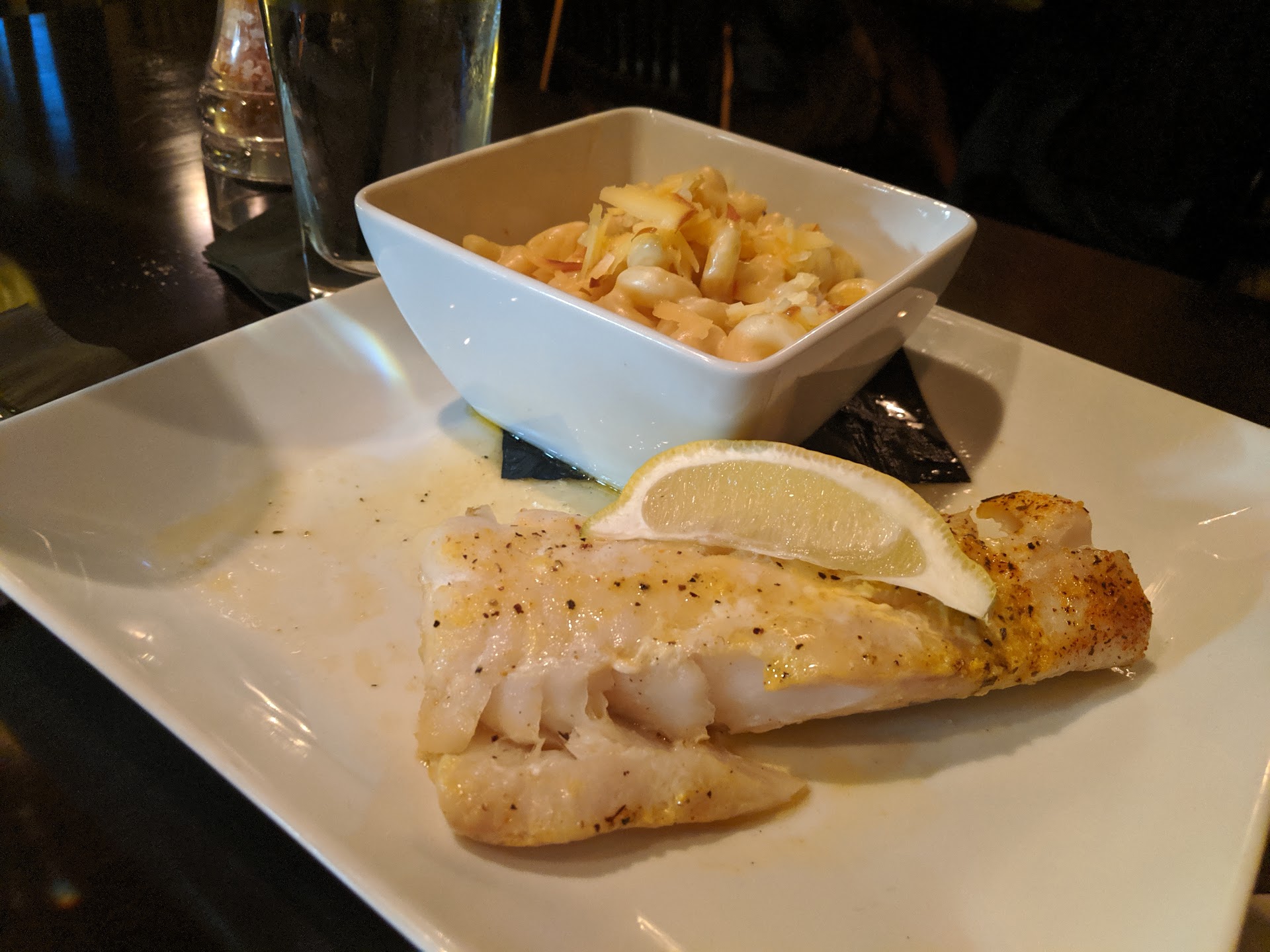 My wife's Lake Erie walleye was excellent. She particularly liked the sweet potato puree side dish. We were also given warm bread with seasoned butter.
