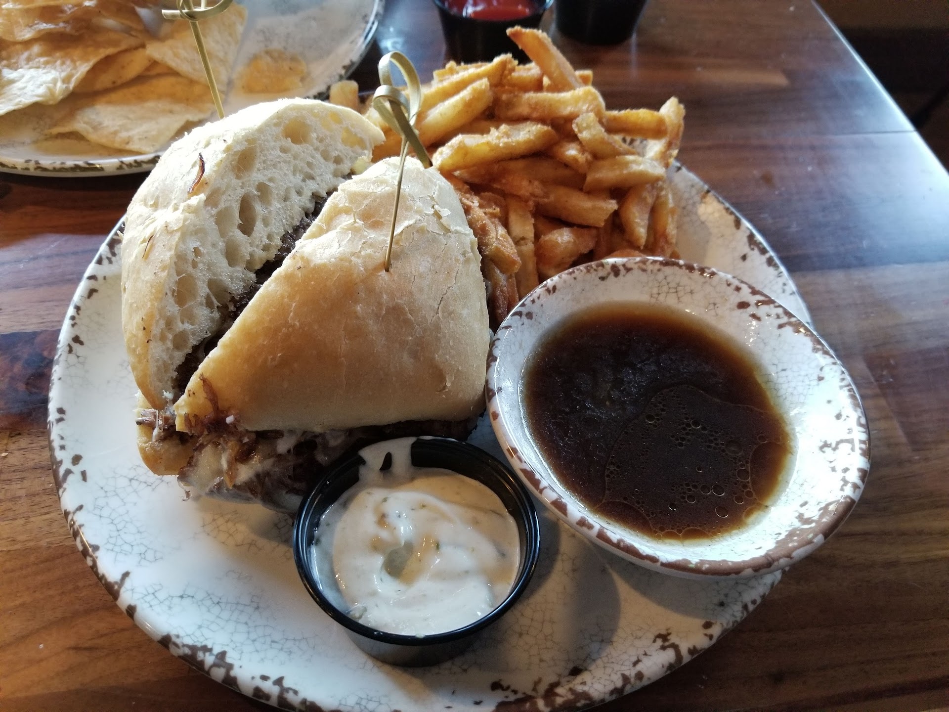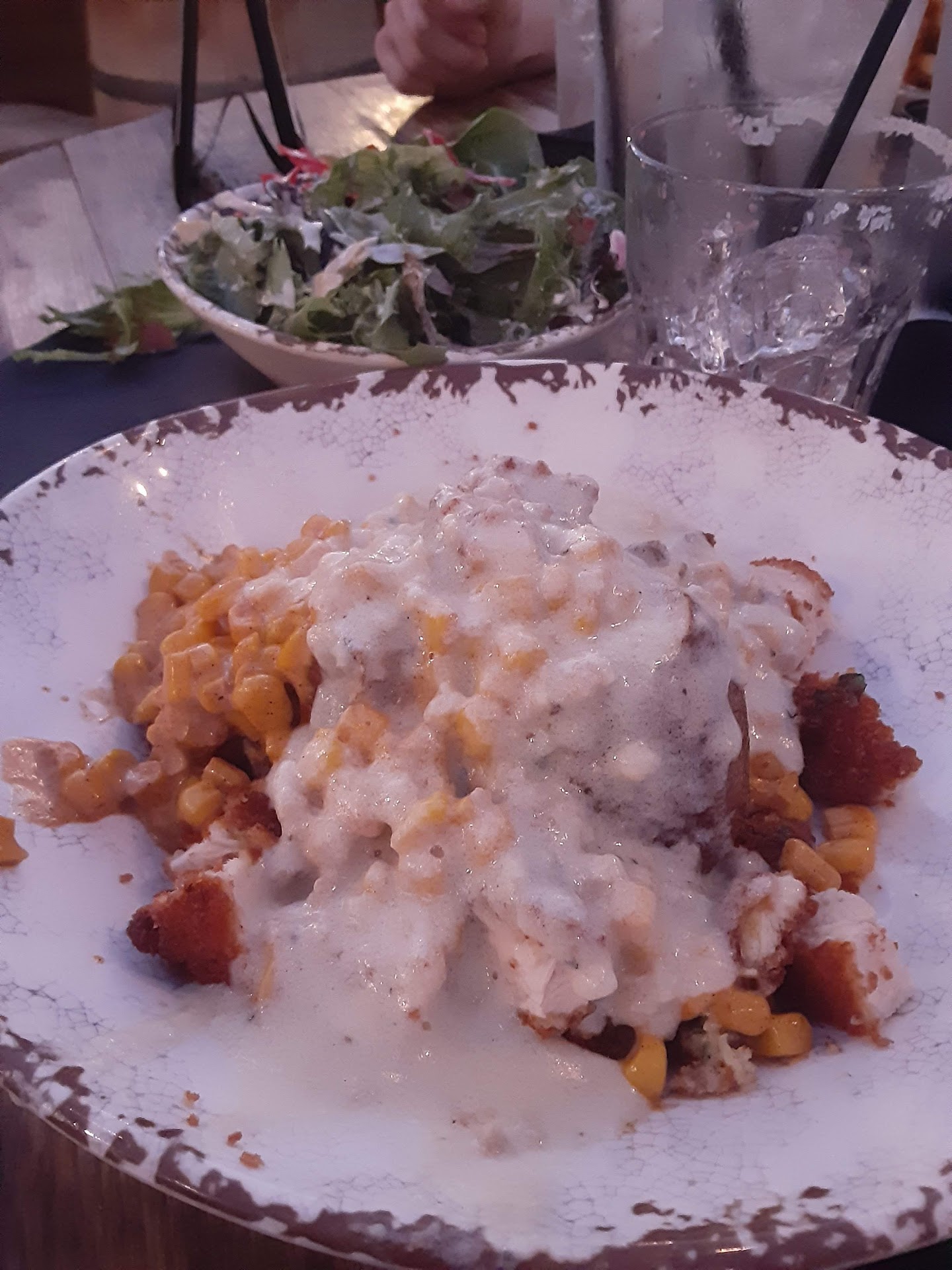 The outdoor table service was very nice. The pretzel bite appetizer was hot and delicious.. Our server was very attentive and quick to identify empty beverage glasses and requests. However, I have been here quite a few times and order mostly the same things when I do patronize this establishment. This time my wife and I ordered different items then our usual. The presentation on the pot roast dish, my wife ordered, was nice overall but the actual piece of roast that was plated was dry, overcooked and very tough and fatty once she attempted to cut into it. We had to send it back unfortunately. Our server was quick to apologize and resolve it. I ordered the pork chop with loaded baked potato and a garden salad. The pork was a little over cooked but still tastey, while the baked potato was old, dry and cold. I mean cold to a point where nothing would melt into it; not even warm. I was of the mindset it was baked much earlier in the day and used for dinner service. Baked potatoes should be hot where the butter and cheese can melt into it nicely. That wasn't the case and our server went back to the kitchen to have it replaced. The new one was 1/2 the size and barely warm. The server then asked if it was better. I had to be honest and tell her it wasn't any different. She again apologized and offered me a different side. I declined it as I had already finished my pork and salad while my wife was waiting for her dish to be remade. I kind of lost my appetite by that point. My side salad was puiny and certainly not enough for being one of the two sides that came with the pork chop. I left hungry and has to stop for something on my way home from there. I shouldn't leave hungry when spending $20 a plate. It seems this restaurant is mostly focused on the Canyon Lake crowd, who go there mostly for the drinks and social aspect. When it opened the food was consistently hot, fresh and memorable. Now that they have been open for some time the food quality is an after thought and has seriously declined. It seems that this is pretty common with resteraunts. When they first open it is wonderful with good quality control and nothing going beyond the pass without the chef signing off. However, as time passes a degradation of quality occurs. That appears to be the case here at the Canyon Cowboy. If the owners do not do something soon, the dream they had will soon crumble into just a fun drinking establishment. Who knows, maybe that was the focus all along, a profiting bar with sub par food. I will give it some time before returning. But I will be fair and try it at least one more time, as everyone can't be judged on just one bad experience. I will report back when I do. Much of the experience was enjoyable, but the food was a complete let down. The Canyon Lake "river" crowd was fun and upbeat, but most were only drinking and not eating, taking up valuable table space for incoming diners. Might I suggest a time limit on your tables to insure you are serving your community completely? By the way, no credit offered or given for the multiple issues withnour orders. That surprised me, even though I generally decline that sort of thing. I always appreciate the offer though, as it shows their heart and intentions. Oh well, back to Texas...