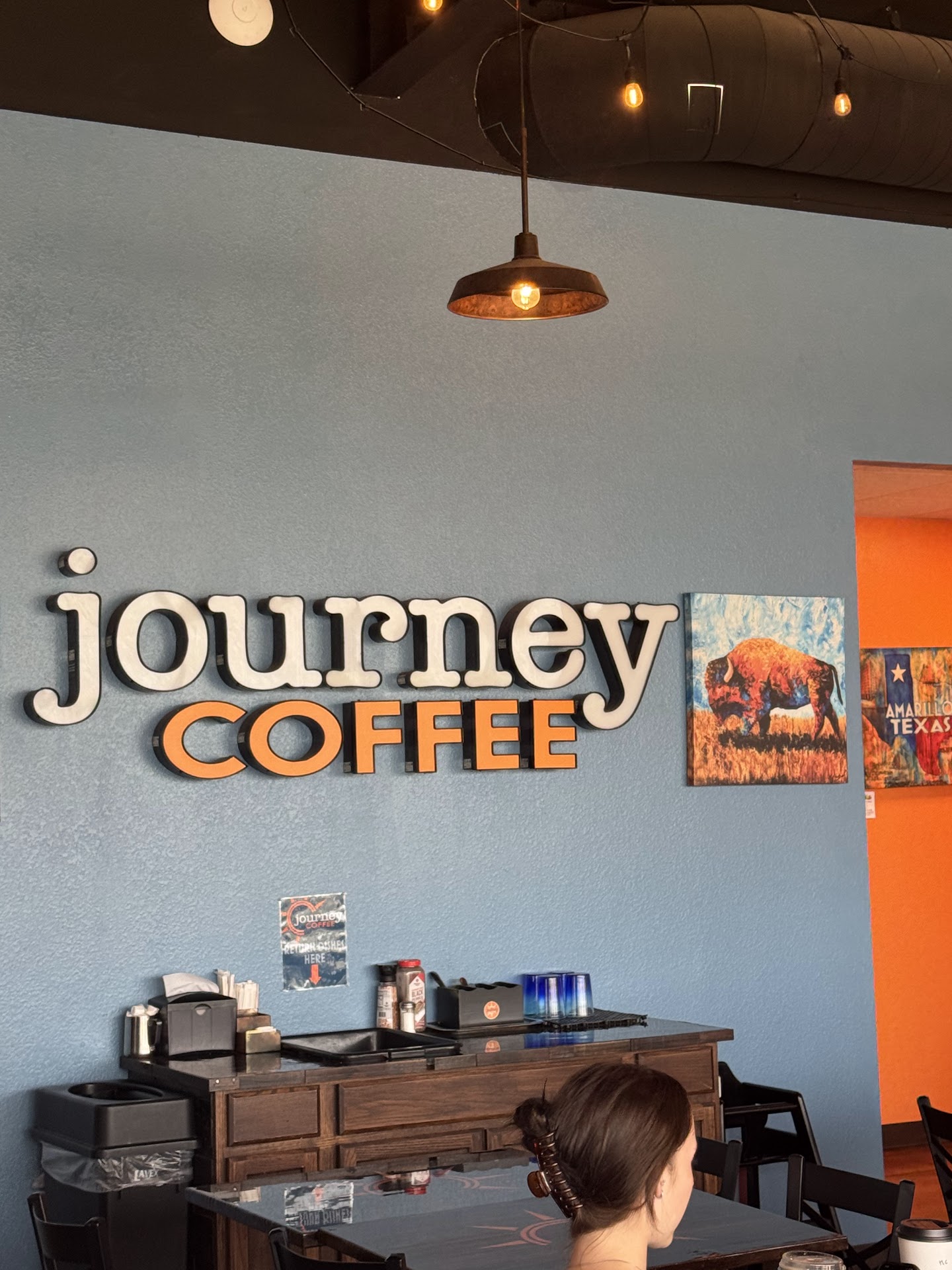 Journey Canyon Coffee was a great surprise during our stop in Amarillo—exactly the kind of local gem you hope to find on a road trip. The service was fast, friendly, and genuinely welcoming, even with several customers ahead of us. It’s the kind of place that immediately feels like a community staple, and the cozy, casual vibe made it a perfect mid-morning stop.