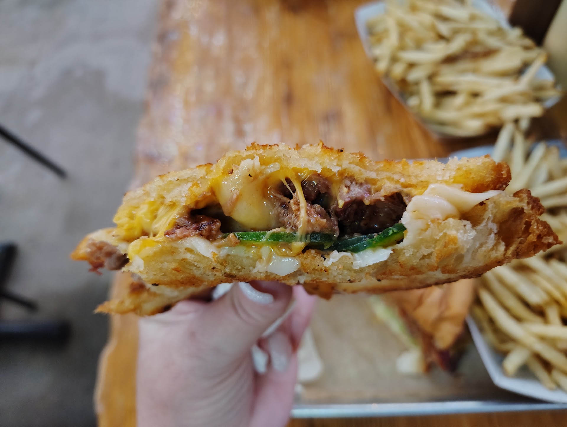 Read moreWe have been seeing a lot of promotions for this place so we went for lunch today. I had a burger with jalapenos with a side of tots. Could not taste the jalapenos at all, no heat there so don't waste your money. What surprised me the most, I expected this to be a high end restaurant but it's just a burger/sandwich/beer venue. When you walk in you immediately place your order from a paper menu at the front entry desk. I expected servers and menus like a real restaurant. To order you give them your phone number so they can text you when your food is ready at the back counter. Not sure how you get to eat if you don't have a phone? If you don't like sharing your phone number with commercial establishments this model may not be friendly. Drinks are self serve then you seat yourself in the open seating area. When food is ready you get a text, but between the music and people chatting I did not hear the text so my food cooled for 3 minutes til I glanced at my phone. Your meals come on a tray. The good thing about self serve, I don't tip at a diner where I have to order standing up or have to retrieve my own food, so I save a few bucks. Overall it was an okay experience with okay food. There is a lot of pretty neon and the dining area is not large but there's more outside seating. I am not sure how the tables are cleaned, this was a Sunday and we saw people and groups eating and leaving but didn't see anyone cleaning the tables. So don't be surprised if have to hunt a bit to find a clean table. Overall it was okay, no big complaints but also nothing that would make me want...