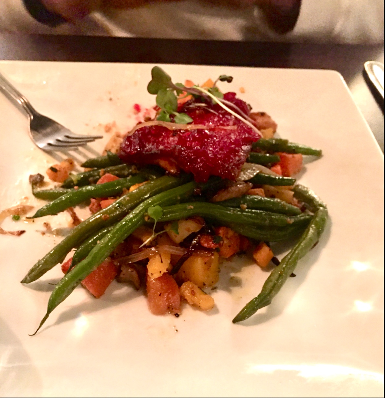 Read moreOver all it wasn't a bad experience but it's not exactly what I was expecting. I ordered a couple of the specials, the mini beef Wellingtons and steak with a mushroom and Jameson demi sauce. The Wellingtons were plated nicely but the bottom of the pastry was still raw and unfortunately the beef inside was well done. The mushroom duxell was stuffed in the middle of the beef and unfortunately very under seasoned and the beef had a very gamey flavor to it. Over all it wasn't bad but not what I was expecting. We didn't finish those and the table was cleared. The server asked if we would like another round of wine which we said yes. The salads arrived and I was surprised at how small they were even for a side salad. Perhaps a cup of mix greens with a half a cherry tomato and sprinkle of shredded carrots. The dressing was a roasted sweet onion I believe and flowing over the top of the ramekin. It was good but way to much for the amount of actual salad I received. My steak arrived with garlic mashed potatoes, grilled asparagus, and the demi sauce on the side. It was all piled on top of each other with steak still bleeding. Covering the mashed potatoes in blood. I cut in to the steak and it was cooked perfectly to medium rare but very under seasoned. With no salt or pepper on the table and my server no where to be found I began to look around the restaurant. I caught the attention of another employee and ask her for my wine I had ordered 20 minutes prior and some salt and pepper. My server reappears a few minutes later with what I had requested thankfully. The sauce for the steak had a very strange flavor it almost tasted like it had freezer burn and just wasn't very appetizing. I mentioned it to the server and he asked if I would like to have something else. I declined due to the amount of time I had already waited to start eating. Overall it wasn't a bad experience and perhaps I just made the wrong choice by ordering specials instead of off the regular menu. But the seasoning level (or lack there of) of all the food was just way off across the board. I feel that this place has a lot of great potential and I may have just caught them on an off night. I plan to try this place again but at $100 that evening it makes me a bit hesitant.