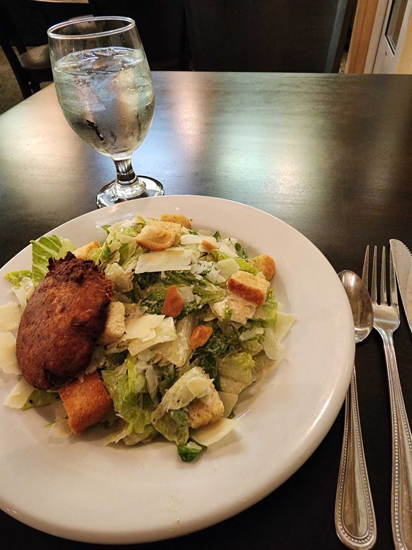 Things started off poorly when we could literally smell the burnt pita before it even arrived at our table. The one side was completely black and the flip side slightly better, but with obvious heavy grill marks. The taste of the soup was off, so there were no points given here. Our entrees came out next. My wife noticed the spring mix greens were wilted, and the cucumber had a glassy look. That look that says toss me out. Half of the tomatoes were still green.