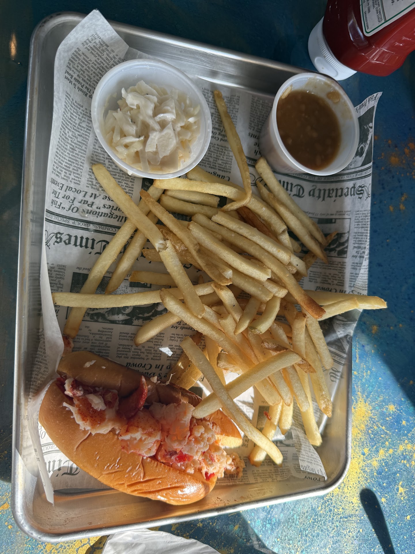 I got the Connecticut lobster roll and it was warm and buttery. It came with fried, baked beans and coleslaw. All of it was so good and fresh! If I lived here I'd be a...