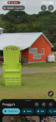 Read moreWe're out here, working on the road, and I see the side of Froggy's and it reads "PIZZA SUBS" I took that as an ad for some infamous pizza subs, which I LOVE a good pizza sub. So I'd said that I'll eat there for lunch.