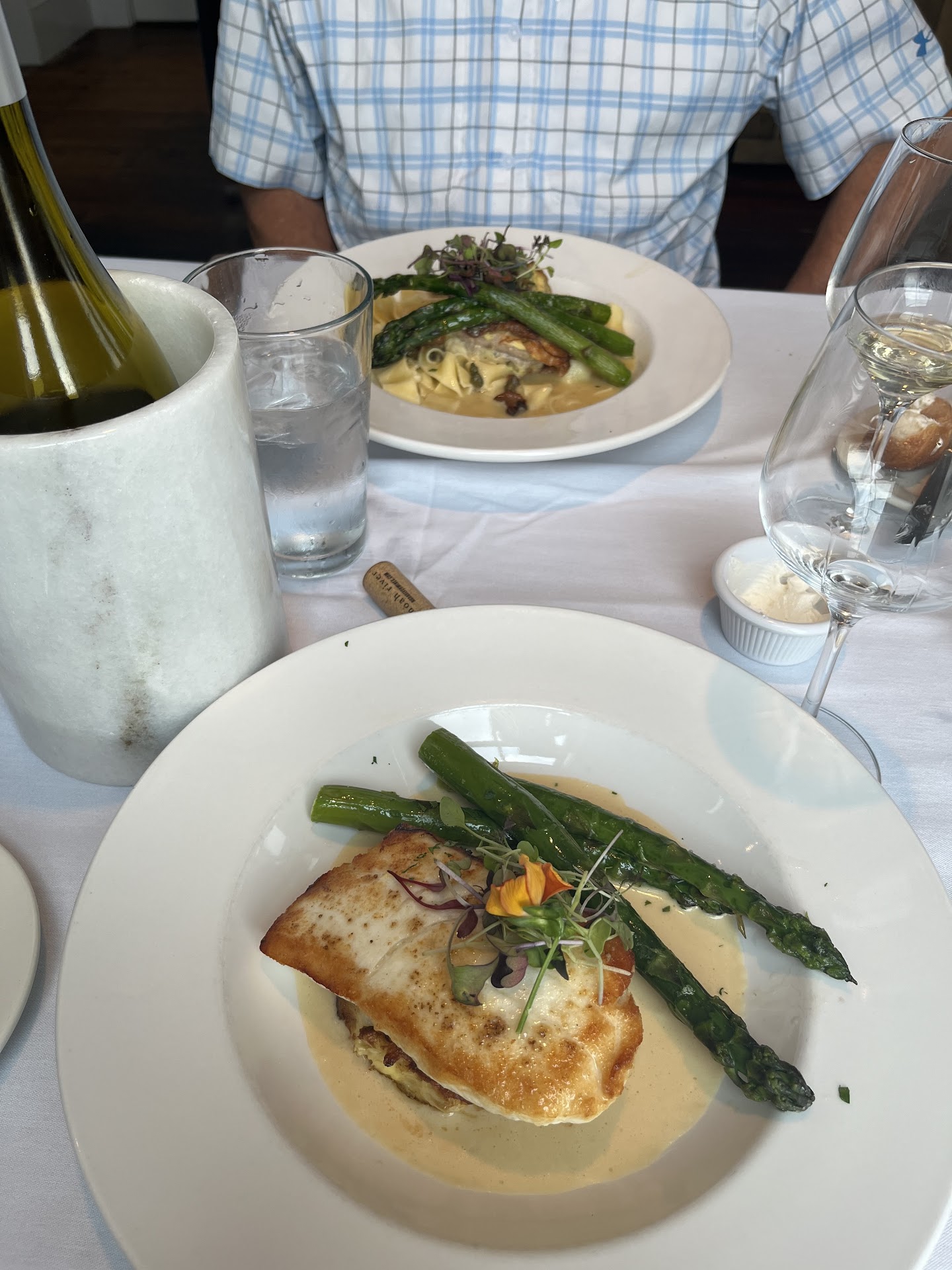 Despite the relatively normalcy of the dining room, it took over 20 minutes for our non-alcoholic drinks to arrive. The fettuccine, which was described as having “lemongrass undertones,” arrived as a green, clumped-together portion of noodles with minimal flavor. The fish of the day—halibut—was equally underwhelming. Rather than the firm, steak-like cut we expected, it was flaky, watery, and lacked both freshness and flavor, suggesting it may have been previously frozen.
