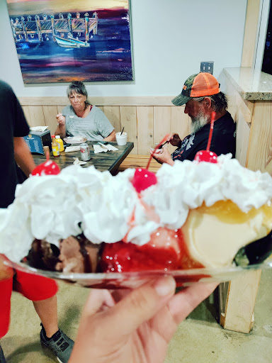 The staff are very courteous. The atmosphere is pleasantly "beachy.". They have custom milkshakes to order and from what I could see (I did not partake) the banana splits were a two man job to finish. (And I am a rather large person, so take that FWIW.). The crab cake sandwich was a decent 3.5 out of 5. The fried shrimp was also typical fare and the pizza is about what you'd expect from a beach shack. The true heroes were the flounder basket and I was lucky enough to get the fried oyster basket. I give the flounder a solid 4 out of 5 and the fried oysters a 4.5 out of 5. They were perfectly cooked and not overly breaded with cornmeal. (I should have asked for some tobasco, but that didn't stop me from eating two servings.). Oh, and I had to ask for the oysters, they were not on the dinner menu.