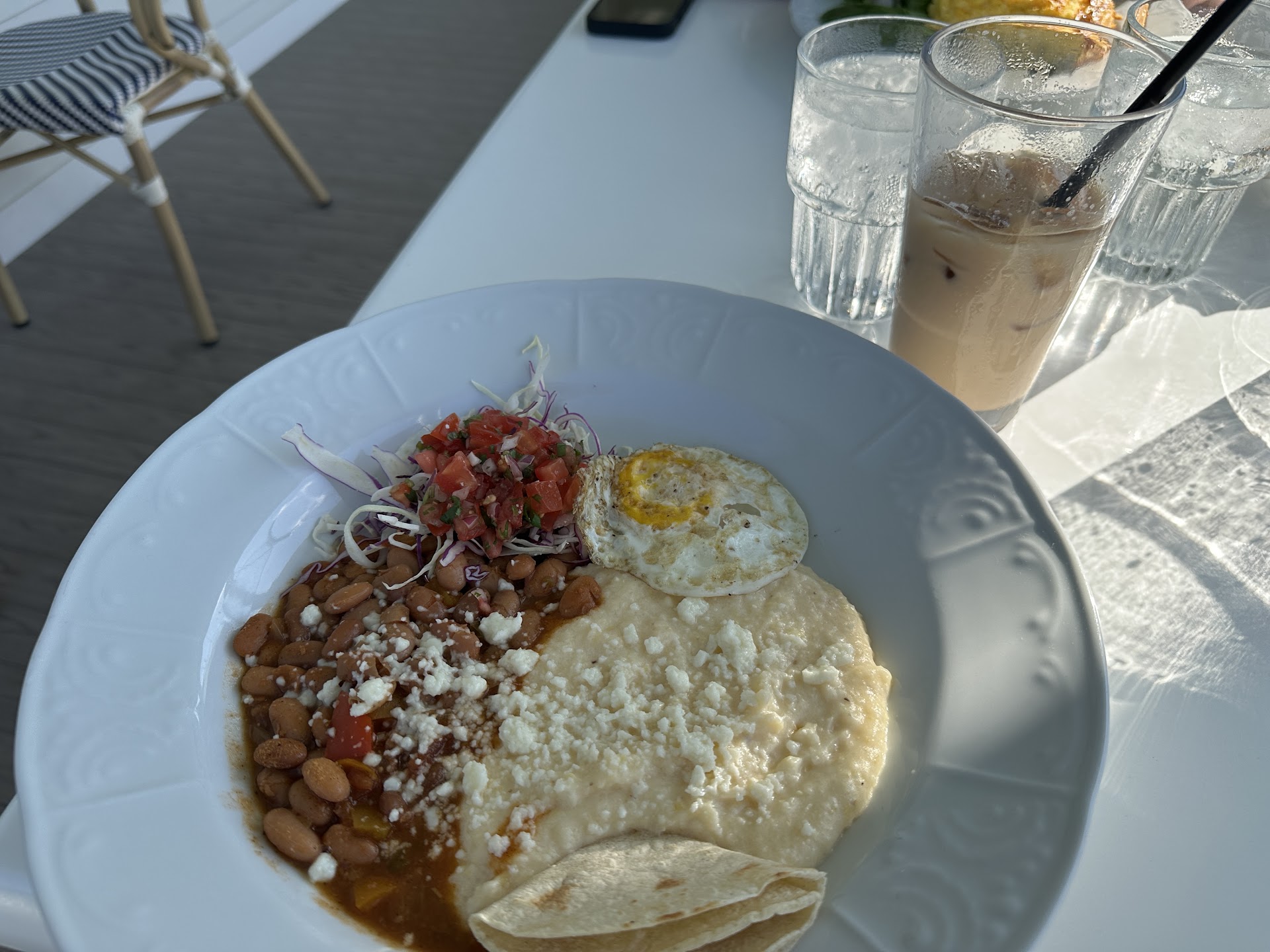 My spouse and I came in and when a place is pretty empty on a weekend, it's obvious there is an issue. They didn't have bean decaf coffee, which several shops in Cape Charles have, so they should have fixed that, easily. There was several brunch items on the menu that I could have had if they just got some gluten free bread options. They didn't have any, so there was only one option, a crustless quiche which was pretty burnt and didn't appear to be very fresh. My spouse had pancakes, which were from a mix and not very good, frozen blueberries, and not fresh, and the syrup was something that had corn syrup in it and not the real thing. I had some French fries as well, which were supposed to be herbed, but they were just overly salted fries with ketchup. There was a loud pump across the street running off and on and not the fault of the hotel, but it still took away from the outside atmosphere. I will give this place a miss next time. The staff was nice and accommodating, but the food was closer to a Denny's. Thanks,...