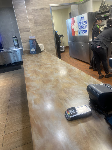 Absolute insolence from employees. Sat in the left drive through long enough without hearing from anyone that I thought it wasn’t working. Truck in other lane was broken down at the order board so I drove to window to see fi the lane was working. Young girl said it was working and told me I couldn’t order at the window and that “ I could drive back around”