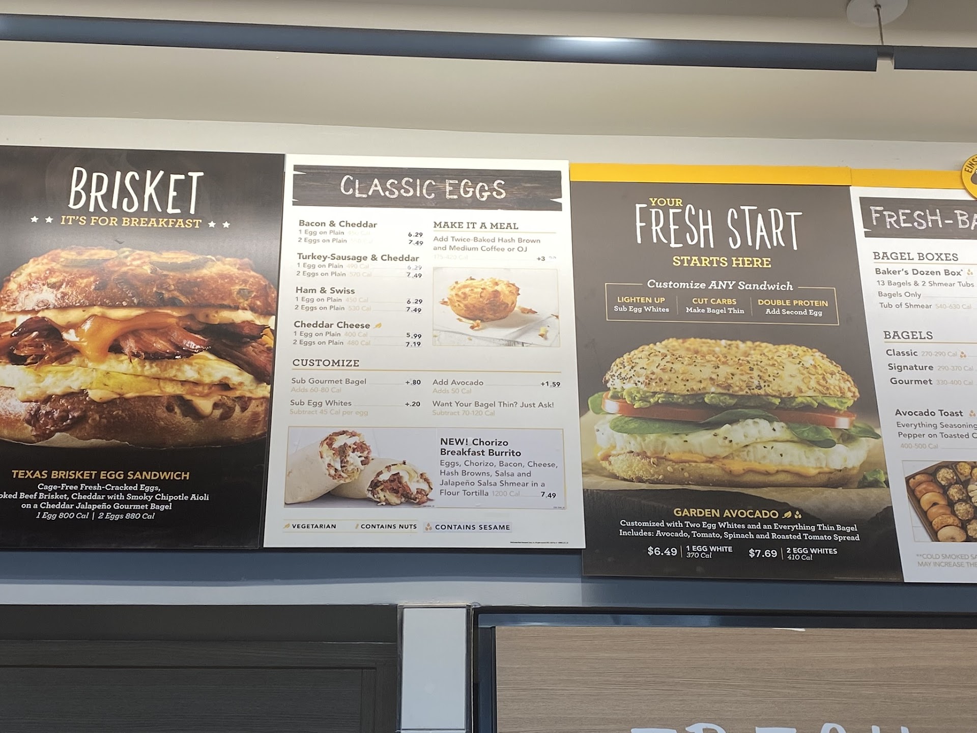 My experience at Einstein Bro. Bagel it was an average experience. When you walk in you are greeted with the smell of little to no fresh bagels. The menu was slightly lighted with beautiful pictures of bagels stuff with these amazing ingredients. You are soon greeted with workers waiting for you to order your food. I had trouble picking out my order. No sandwich really spoke to me. On the other hand if you are vegan you could easily pick the option “Avocado Vego” but I wanted something with dairy in it so I had “Garden Avocado” it had avocado,spainish,egg white,and tomato. Although the ingredients seem very fresh and I would have to say that was one of there ways of being the spotlight of cafes near me. I didn’t like how it was dry,with nothing saving it except the freshness of the ingredients. On the side of our main course meal. We had drinks I had the “cold brew caramel shake” it tasted like I wanted diabetes in one sip. But besides that I liked it very much. But on the downfall if you want to be disappointed again they only had 2 sizes small and large. I got the large it was a pretty good size.the drink was cold with wimp cream on top with a drizzle of caramel. You can taste of the sweetness overtake your mouth. When it hint my mouth I felt confuse,angry and the worst backstab. I had this healthy sandwich but then I had this sweat drink. It didn’t complete eachother. With barely any smoothies on their menu. I wondered if I should of picked one of them. But a smoothly with a bagel, doesn’t fit right. Overall I would say go to this place if you want a quick bite to eat before heading to your disappointed work place, bc that’s what your...