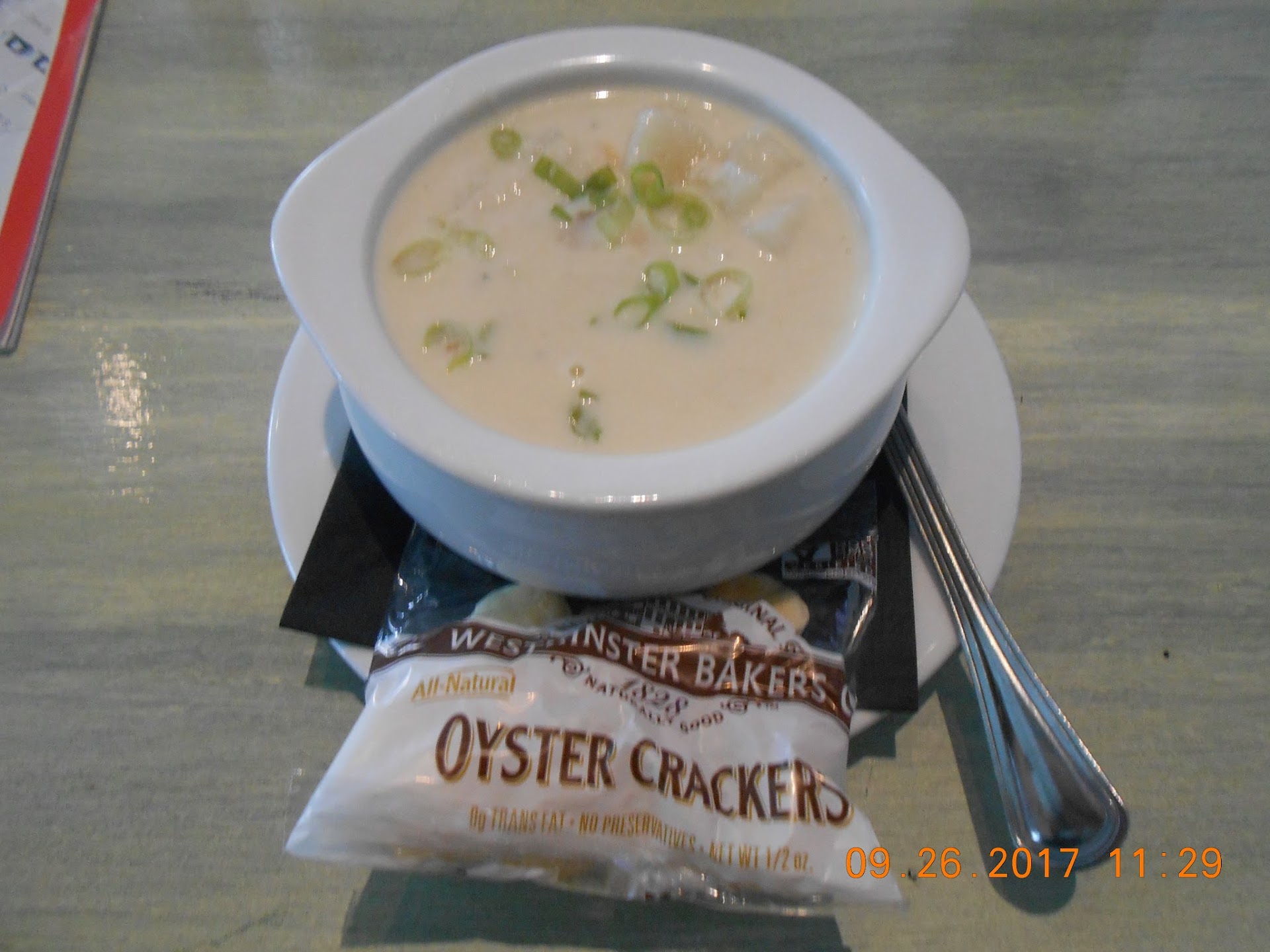 But food first. They make one of the best clam chowder around. Lots of clams, taters great flavor... Though adding chives on top is a unusual topping for chowder. A small bowl is 6 bucks.