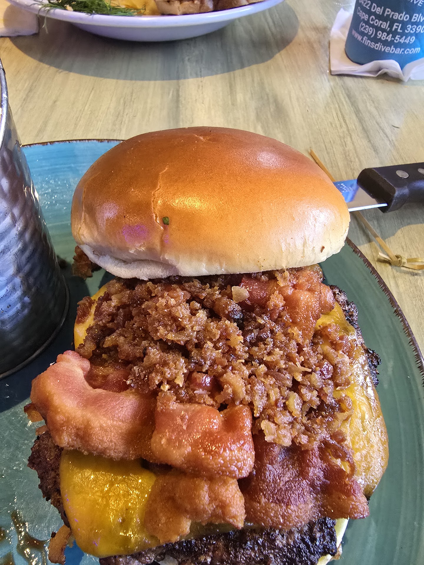 Fins Seafood & Dive Bar, Del Prado Blvd., Cape Coral, Fl., Here is my 2 cents on the food and chatter.