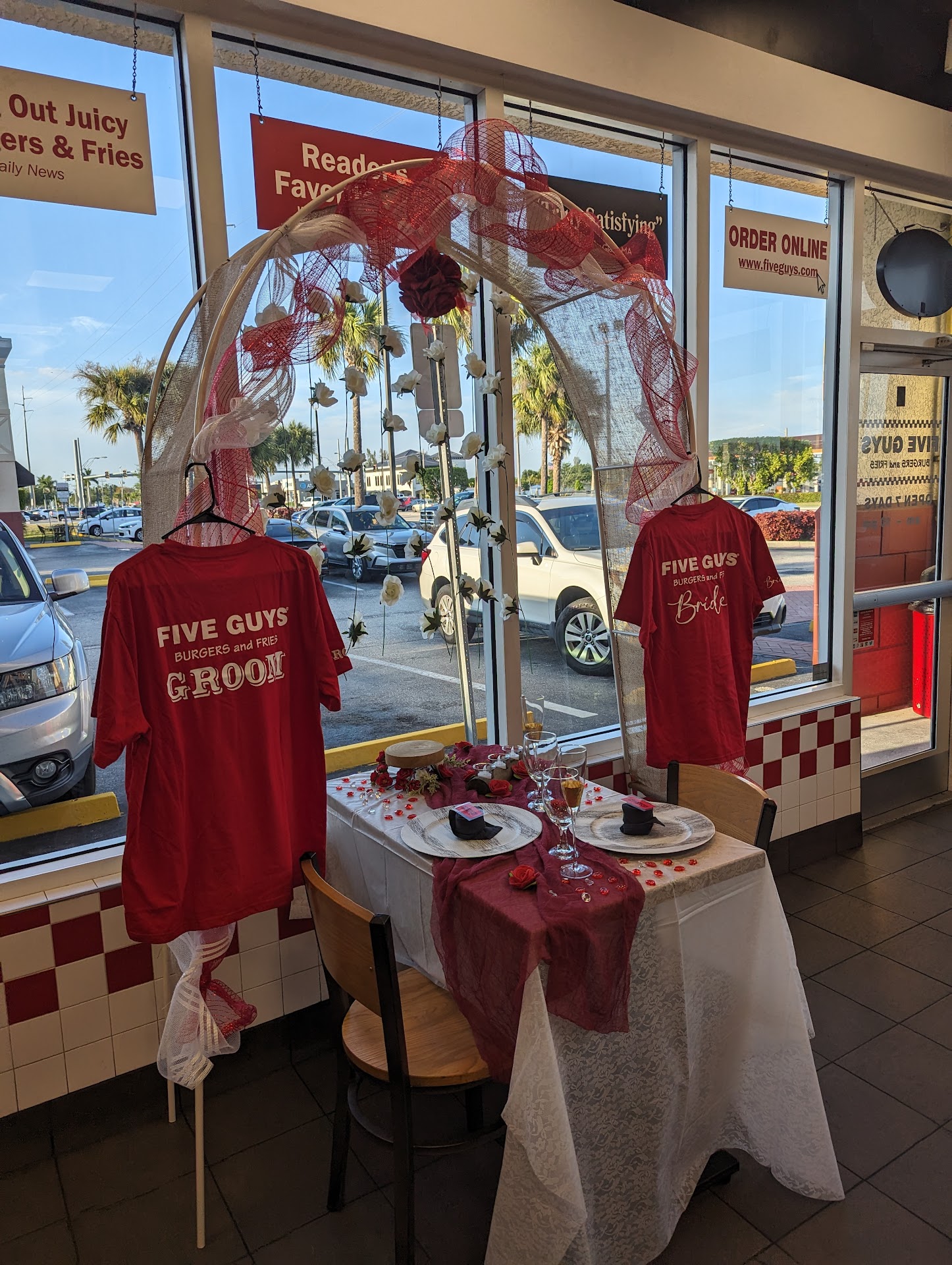 Read moreGreat burgers last night (04/05/2025)! Really wish I had taken a photo of mine, it was so delicious and looked great. I ordered a grilled cheese with a patty and bacon (so grilled cheese bacon burger, if you will) and for my toppings I added BBQ Sauce and Mayo, Grilled Onions and Grilled Mushrooms…it was delicious! One of my new favorite combos at Five Guys for sure! My husband throughly enjoyed his bacon cheeseburger with mustard, ketchup, pickles and onion! We also had great Cajun fries. We did 3 burgers (the grilled cheese burger I made, the regular bacon cheeseburger I mentioned and a little hamburger with mustard) and a regular Cajun fry for $36. Honestly, that’s not terrible compared to how much we spend on Burger King or McDonalds and Five Guys is definitely better quality and you’re guaranteed a fresh burger vs fast food being hit or miss. We also ordered on the app and just went inside and waited for our name to be called, very simple! We look forward to hitting up this...