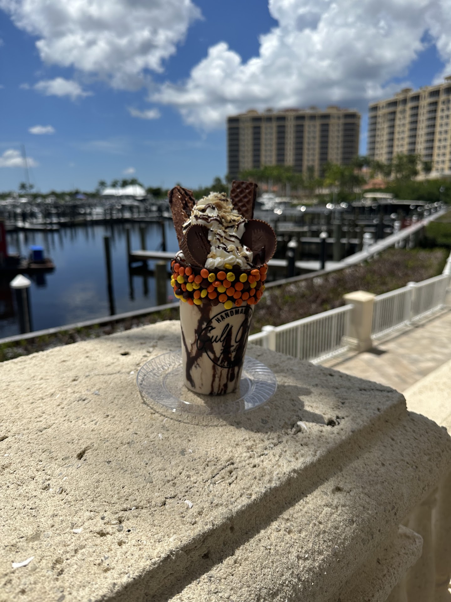 This shop was a little hard to find - GPS put it squarely in the Westin's lobby. After poking around a bit, we discovered all the little shops on the dock-side of the hotel, and there was Gold Coast Fudge, at #110. There was a nice young man with a friendly smile behind the counter, who gave us a couple humongous dips. Mine was pumpkin, hubby's was Almond Joy. Hubby's was the hands-down favorite, with lots of coconut flavor, nice chunks of dark chocolate, and whole, roasted almonds...like a cold candy bar. I wish I could say the pumpkin was delish - full of sweet pumpkin-spice flavor that's so popular in - everything - this time of year, but it wasn't. There was just about no pumpkin flavor, and very little spice. I'm not quite sure what the flavor was, actually. Hubby was kind enough to trade me for the last few bites. I gobbled up the Almond Joy. He took one taste of the pumpkin and left the rest. Sorry, nice boy behind the counter. One great thing about our time there: we took a stroll down along the promenade while we ate our ice cream, on this gorgeous 'fall' day, and looked at...