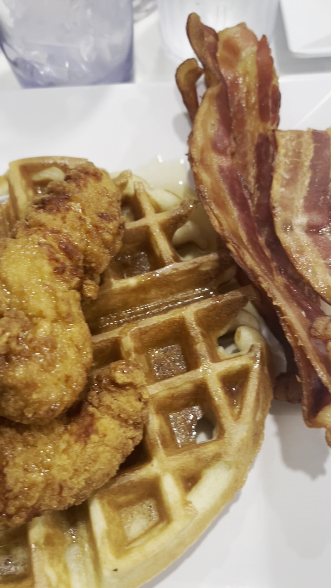 The food was absolutely delicious and exceeded our expectations. I had the chicken and waffles with a side of bacon and scrambled eggs with cheese. The waffle was light, fluffy, and had just the right amount of sweetness, while the fried chicken was perfectly crispy on the outside and juicy on the inside, seasoned to perfection. The scrambled eggs with cheese were creamy and flavorful, and the bacon was cooked just right—crispy and full of that classic smoky flavor. My wife went with the pancakes and bacon, along with a side of biscuits and gravy. The pancakes were thick, fluffy, and had a rich, buttery taste, making for the perfect bite. The biscuits and gravy were a standout—warm, soft biscuits smothered in a creamy, well-seasoned sausage gravy that had just the right balance of richness and flavor.