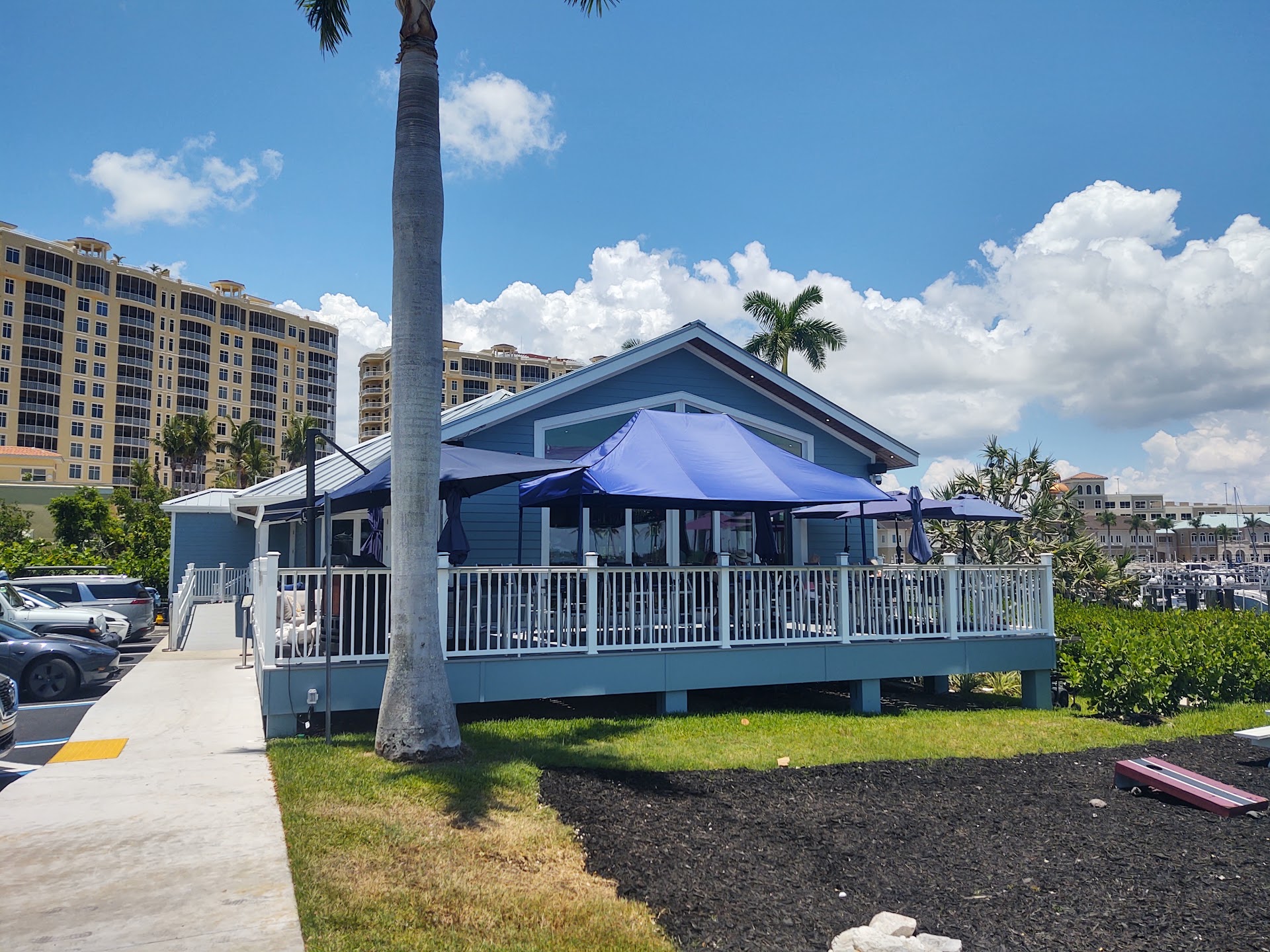 Read moreSuperb experience from start to finish! We got there early for lunch, about 11:20am, so there was plenty of parking. However, there is also overflow parking across the street. We were greeted enthusiastically by the charming host who promptly seated us outside (our choice) at a table that overlooked both the Marina and Bight with beautiful landscaping surrounding us. 3 outdoor fans were spinning at a comfortable speed above us successfully keeping the heat at bay. The waitress promptly provided us with a cold bottle of water for the table which we poured in the nautical blue glasses which matched the sharing plates already placed on the table... Nice touch! There are plenty of choices on the menu, including a great selection of local draft beers (blueberry wheat, hazy IPA) and craft beers... All served quickly and cold considering it was 90 degrees and very humid. We all ordered sandwiches which all came with a side... I ordered the Cubano (only because I have not had one in a while), my friend ordered the Reuben and my other friend ordered the fried Grouper. They were all delivered quickly and presented tastefully... and tasted great! Our server, Amber, was passionate, friendly and was able to answer all of our questions from food recommendations to "what kind of tree is that?" Lastly, the restaurant itself has a charming upscale nautical feel with potted plants and lanterns adorning the outdoor steps and wood planking, blue walls with white trim accenting the outdoor space. Once the weather cools, you can see that the doors will slide open creating the ultimate in al fresco Florida dining. Since we live within biking distance, I can see this becoming a new favorite dining destination! Highly recommend for an all around superb dining experience! Can't wait to come back and...