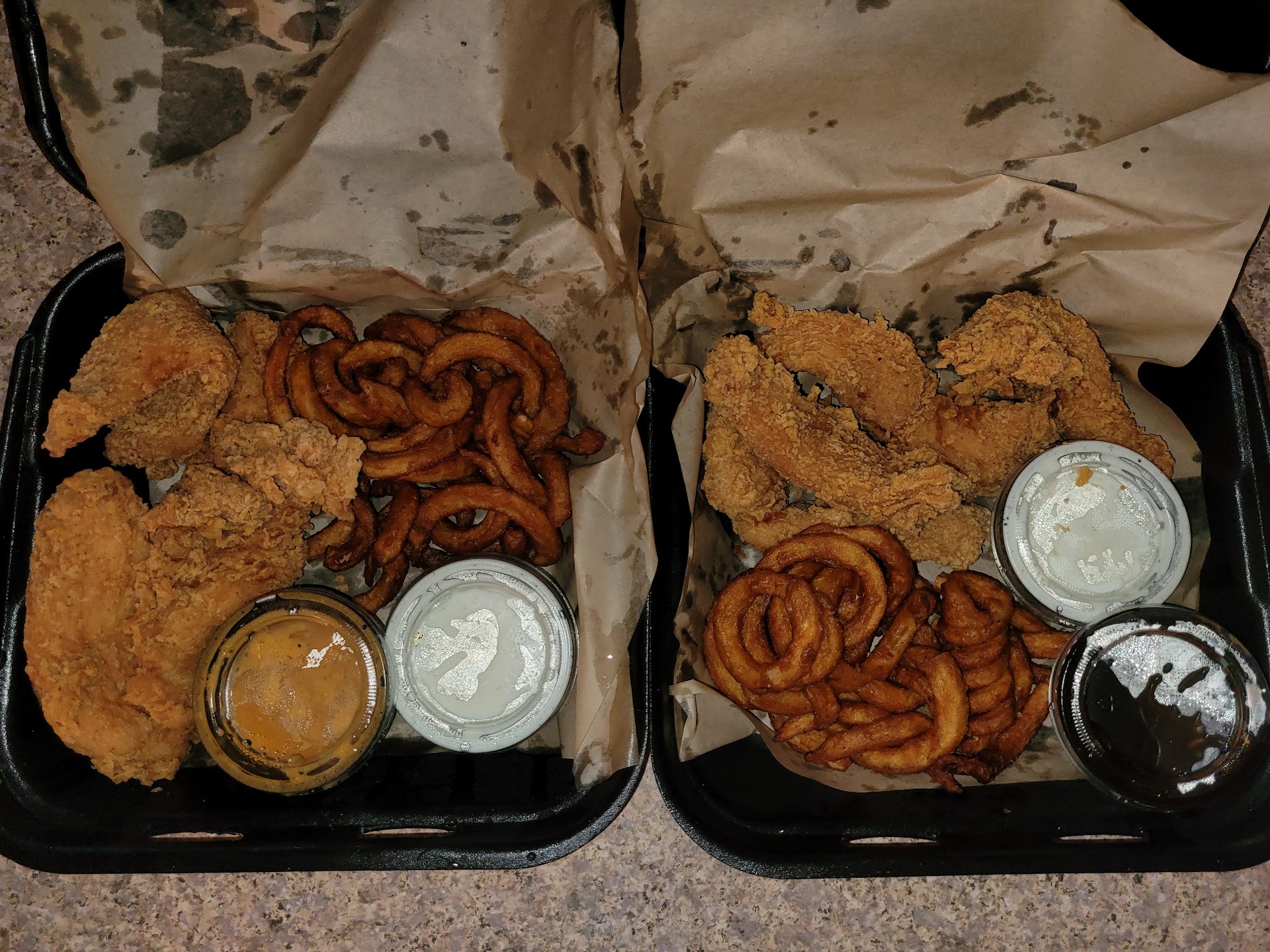 Read moreWe ordered delivery online & surprised at the negative reviews as it was really good! Their chicken tender breading is similar to Popeyes & tasted great! We each got "just the strips" - 4 tenders, 2 sauces & curly fries which was a good price @$12. There weren't very many fries, but you can order extra fries for only $3 so we'll do that next time. Happy customers and we will...