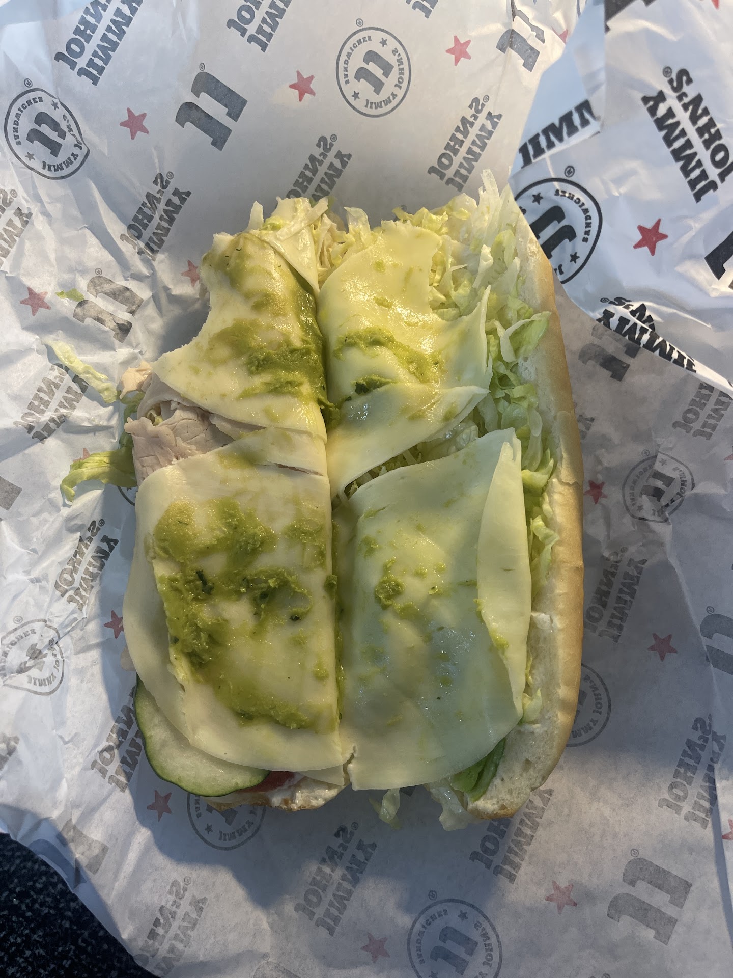 Now let’s talk about that sandwich. I ordered it as it came, but added some of those spicy Jimmy peppers. (Man, those things are good.) I opened the sandwich and it was visibly wet. Picked it up and the bread was spongy. I knew right away my stomach wasn’t going to like me. I bit into the sandwich anyway and it was honestly a mouthful of grease. The idea of the sandwich sounds fantastic, but the execution is lacking. There are multiple sauces on the sandwich and they were all just…too much, especially with the roasted tomatoes, which added yet another wet element to the sandwich. I couldn’t taste the meat or the whole-milk mozzarella (which has a delicate flavor to begin with), or even the bread. This was my cheat meal, and I’m so sad that I wasted it on this mess of a sandwich. Next time I’ll order my usual, I guess.