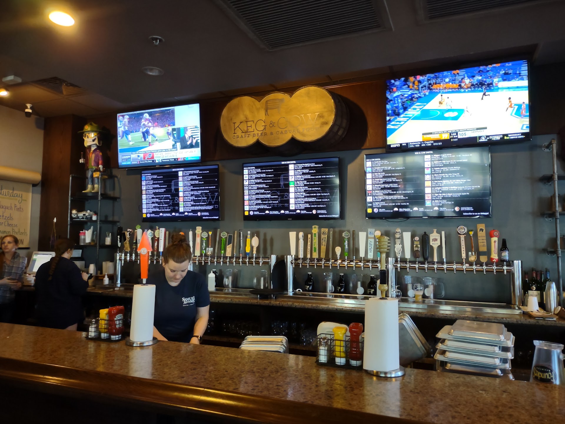 Read moreSo everything started out great. After arriving at 7:30 to find a 20 minute wait for a table 3 bar stools vacated and there were 3 of us so it made perfect sense to take the stools and eat at the bar. After about 5 minutes and at least 20 times the bartender passed is by we were greeted with politeness and we ordered our drinks and asked for menus. The drinks were served in an acceptable time frame and we wasted no time ordering our food.. we asked for 2 appetizers and we each ordered a burger. The apps came out in about 10 minutes and they were delicious. We devoured them since it was close to 8:00 by then. Now the wait… we noticed people that were seated after 8:00 already had their food and none for us… at about 8:30 we inquired “ what happened to our order? “ the reply was it got busy. So we all turned around and saw a practically empty dining room. The bartender said the kitchen got slammed but that doesn’t explain people seated after we ordered our food were already leaving having eaten and paying their check. I’ve worked on kitchens before and I know when an order is lost not delayed because of over crowding. Well the food finally arrived at 8:45… the restaurant closes at 9:00.. and it arrived just in time to coincide with the nightly mopping of the floors and bar area. Great combination of aromas of cheeseburger and cleaning fluids. I understand everybody wants to go home after work but do you have to mop the floors right behind me while I’m trying to eat? The burger was tasty and the chips were too but the lame excuse of just being too busy to cook our food and the hectic cleaning procedures going on in front of and behind us are a...