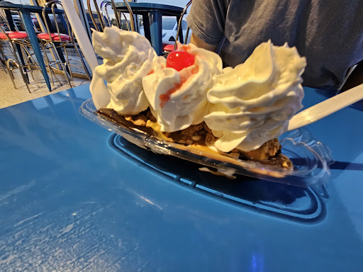 I feel like the ice cream quality when down since having opened up new locations. It use to be really good, there is grittiness to the ice cream and flavors that shouldn’t taste like mint did. Just odd. They offer military discount. The girl that was working was super kind. It was clean inside, there’s restrooms, plenty of seating (which was always needed lol). There are binders for different states and countries to which you can write in. If you donate your Military patches, License plates (Motorcycle, car, etc.), College pennants you can receive a free small cup of ice cream.