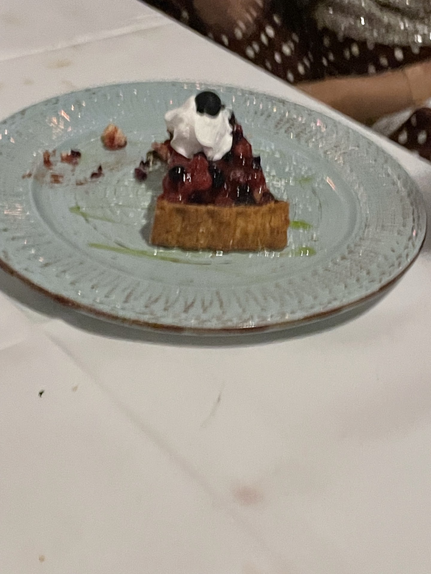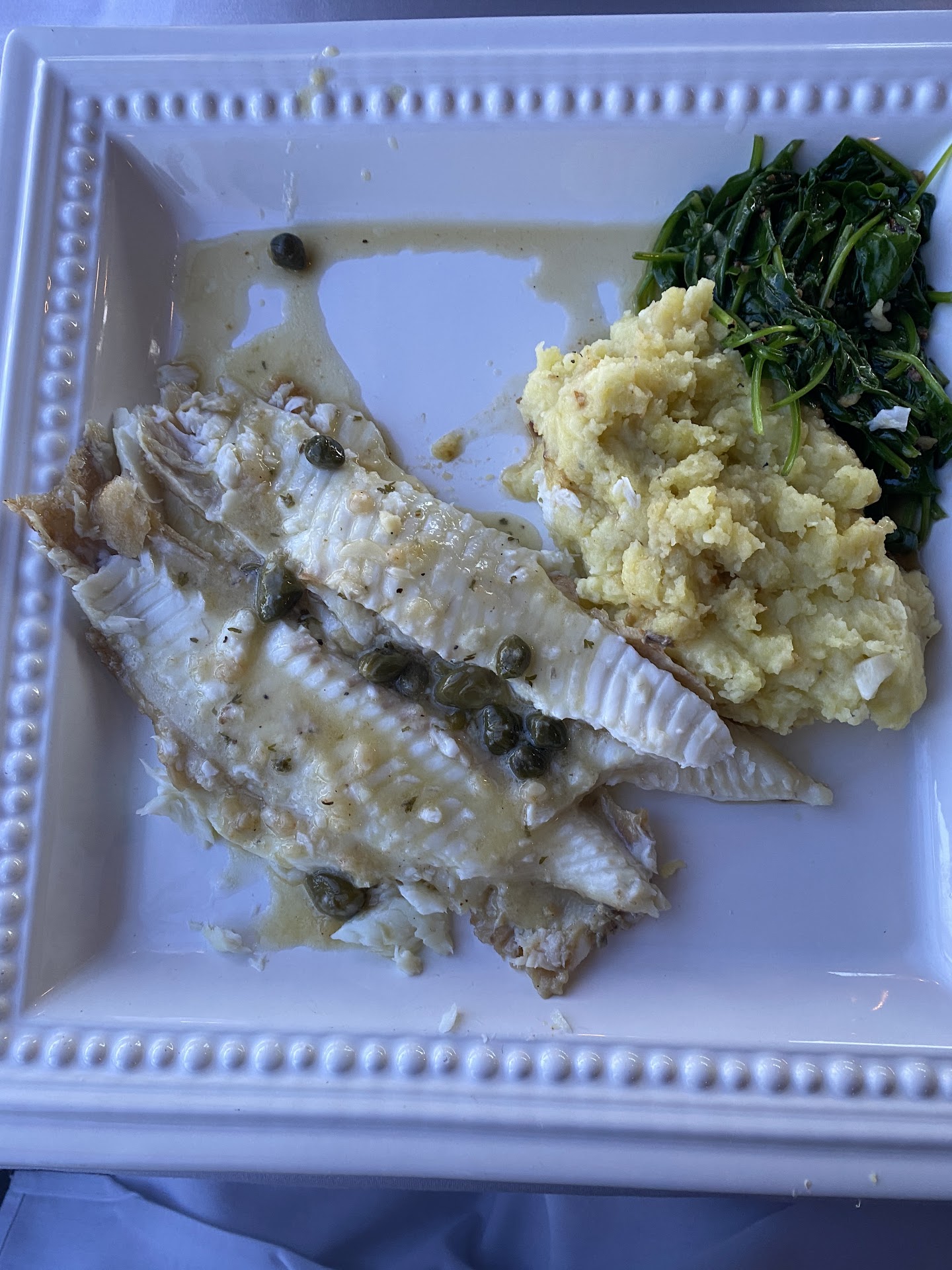 Pasta Sinatra a few tiny calms and shrimp in a thin bland sauce supposedly with gaeta olives & capers. I think my dish had two olives, (one with a pit I chomped down on) no capers and a few tomato pieces. Eggplant Rollantini was routine.