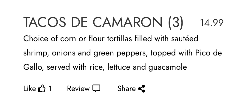 Read moreWe were seated immediately after arriving without a reservation. We opened our menus and food fell from my daughter's menu. It took several minutes for our "waiter" Javier to get to our table. He took our drink order and left without asking if we were ready to order. He came back with our drinks after an extended period of time and again he left without taking our dinner order. After observing while we waited more than 15 minutes for Javier to return I noticed he was not wearing the waiters uniform. He is the bartender. He took our order. While we were there, a table sat after us got their drinks before us and were served and paid their check before I got my glass of water. They were probably at home with their feet up before we got our entree. I had the shrimp chimichanga and my daughter had the vegetable fajitas. The chimichanga was OK not bad but not necessarily good it lacked seasoning. Rice was under seasoned but the beans were quite tasty. The vegetable fajitas were also under seasoned. I would normally not complain about food without speaking with my server. But we were never asked how everything was to seek some remedy. It was not the servers fault. No one was managing the floor. It was a free for all. I gave one star for Javier's hard work and a star for an adequate...