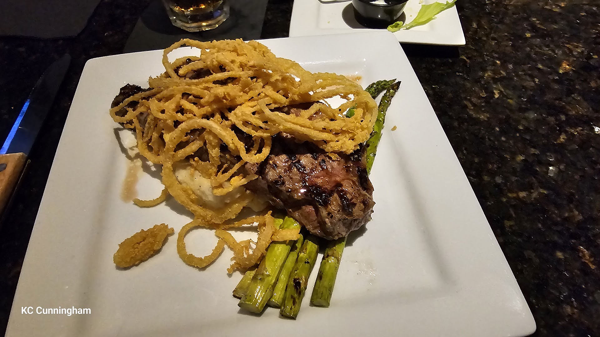 The Menu is very limited and nothing enticing. Wife had the French Onion soup which was tasty, but my Escargot was a abject failure, five knuckle sized snails probably from a #10 can from the restaurant depot, slathered in butter and broiled to a greasy mess, nothing to accompany it, no crosstini, I used pieces of the garlic knots they give you just to have something to eat it with.