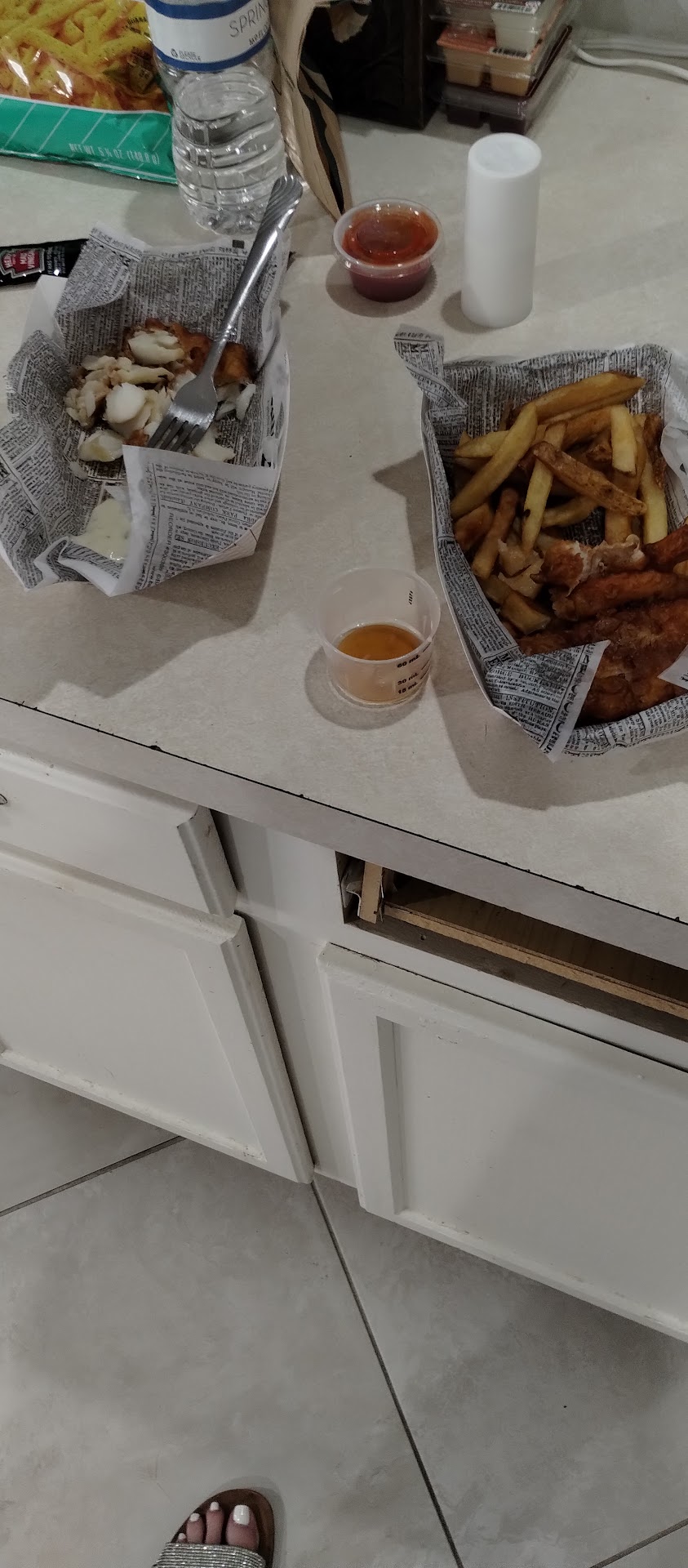 FOOD: The food is good. Fish and chips were hot and fresh. No real complaints there. After having it several times I wouldn't say its the best fish and chips I've ever had but it will work for SWFL. Carry out is fast and efficient.
