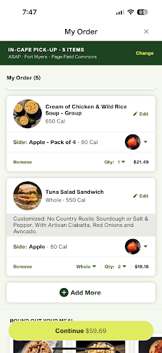Read moreWow! What a great experience. I ordered the avocado, tomato, multigrain bagel flat, minus the egg white, minus the spinach and minus the cheese. Being able to get this, alone, is a blessing (apparently this isn't possible at the Page Field store). Then, when I went into the store to pick it up everyone was SO NICE: A gentleman at the counter, who seemed to be somewhat new, and a young woman with blonde hair (I wish I had gotten her name) who appeared to be in management because she wore a different shirt, also another woman at the counter. My breakfast sandwich wasn't ready so I asked if they had hummus on their breakfast menu. I told them it would be great to have a schmear of hummus on my breakfast sandwich and they didn't hesitate to get it done (apparently this isn't possible in Naples). It was SO GOOD, just like I would make at home. THANK YOU Cape Coral/Pine Island Morning Team, y'all made my morning! Other Paneras could learn a lot from...