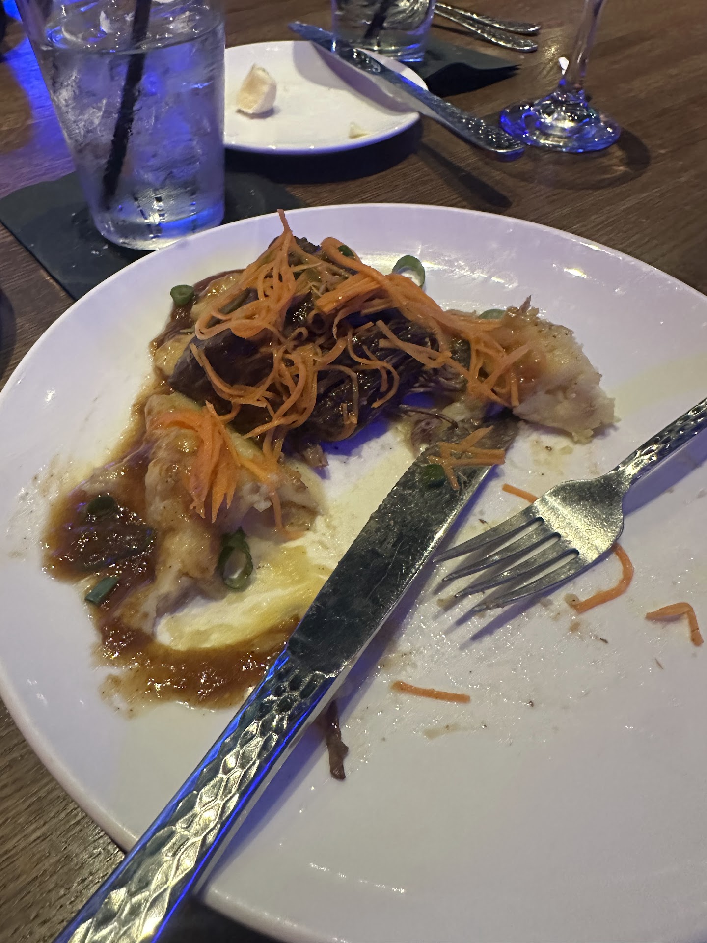 The biggest reason for the 3 stars was the main course. A surprising disappointment. After an hour of waiting we received our meals which couldn’t have been more wrong, I’ll list them one by one. The sous vide chicken dish was amazing. Everything as is should be and delicious. Second was 3 different filet dishes. Mine was an 8oz filet with smashed potatoes and broccolini. I received a very “small” 8oz with very little flavor cooked poorly as medium. It came with rice and lettuce which was not close to what I ordered. The 8oz was quite small and if I cooked it I would be disappointed. The second filet was 8oz cooked “well done” was cut in half to achieve this, which is a strange choice for such a small filet you shouldn’t have to butterfly cut a small steak to get to well done. That dish was served without the fries when it was supposed to have them. The third filet meal was cooked medium like the first was was overly charred on the outside. The sides were also wrong with mashed potatoes instead of fries. The waitress was sure to make sure all of the sides were correct and the sides were the honestly the best parts. All of the steaks were a great quality meat but cooked sub par at best. The service was great but it was disappointing to see so many simple mistakes for a low requirement dinner at a steep price. We let the waitress know of all the different issues we had and the sub par cooking. The waitress acknowledged us but didn’t do much about it. We waited a bit longer and expected to express our concerns to the manger to help a “new” restaurant but no one came over. So we paid our bill and left after no one else approached us.