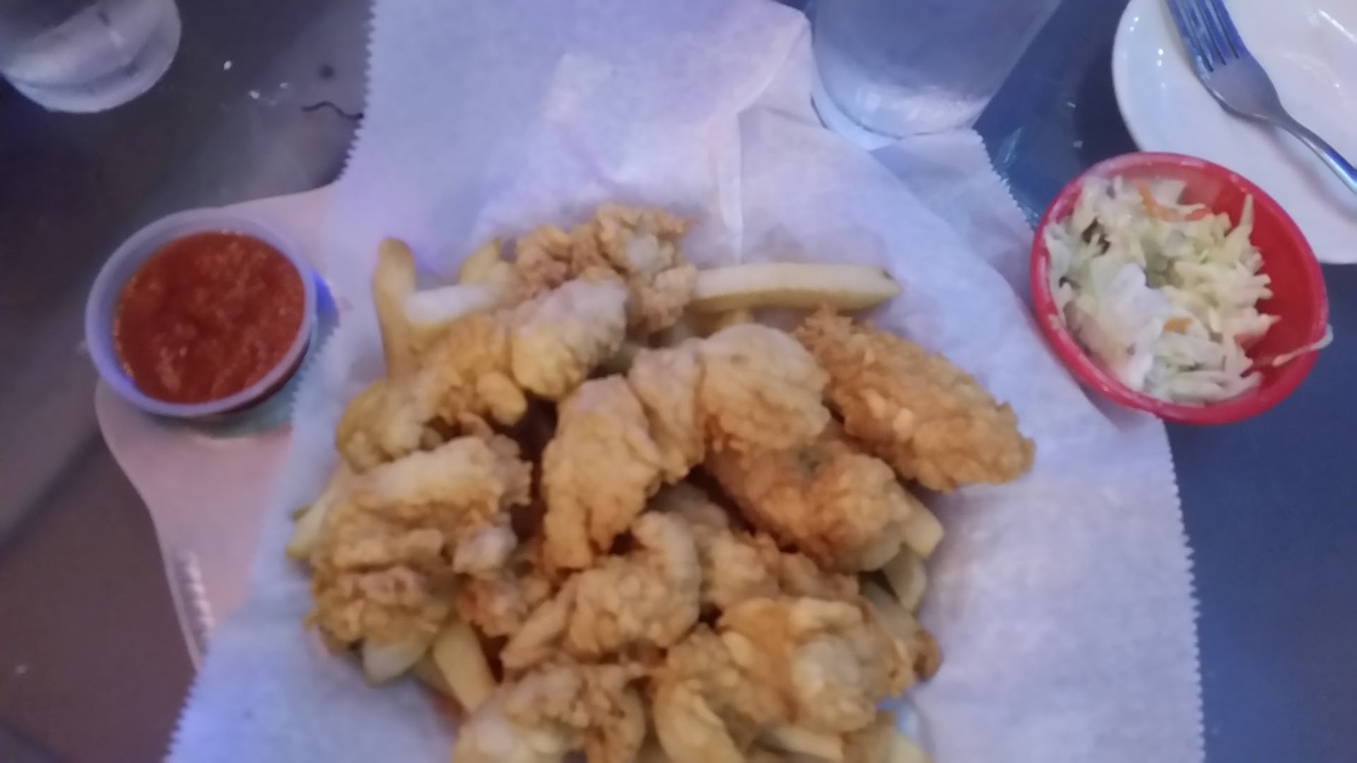 Read moreBeing one to look at reviews online, we seemed very excited to go try a âlow-keyâ meal, something off the path, not too fancy. We arrived with high hopes and wondered immediately if it was even a restaurant since the lighting and outdoor decor looked like a rundown trailer park. Walking up, everybody staring, we seen a small pond which appears to of never been cleaned. We didnât know if we were to seat ourself or what, searching for a worker we were pointed to an outdoor seat with an âamazingâ scenery of a large flatscreen tv and a bug zapper above our heads. The tables were still very dirty and every chair seemed to of been picked up from various dumpsters around the city. The smell pushed out of the main building from the carpeting and odd decor. We kept our hopes up. Ordered appetizers, drinks, and âchowdah.â The chowdah wasnât even close, as it was basically thawed seafood mix from the local store, soaked in a sort of beef broth, disguised as something more. Our cokes came out of cans, and dirty dishes were scarcely taken from the table. We were served various disgusting (samplers?) plates of mushy fish or weird fries and peanut butter, half broken or undercooked. The only decent thing we had were the fried green tomatoes, and they were still presented poorly. We were left to guess that the random dropping off of weird complementary pieces of food were to make up for the terrible setting we were in. To top off this experience was the dessert we never ordered, which was drenched with whip cream in attempt to cover up the dread. My father and I wanted to simply wash our hands afterward, but the bathroom was a whole other problem. He went first, and then told me just to go in there and see the disaster. There were chairs in the bathroom, waiting for two stalls, one out of order, painted with naked mermaids caressing each other. The mirror was dirty and the paper towels were a soaked mess. The owner came out and talked to random tables and extended their stay, so we asked for our bill before he came to us. For near $100, we had terrible âscodâ and just a terrible meal/experience. Do not waste your money or your time. There are plenty of better restaurants in the area, which may...